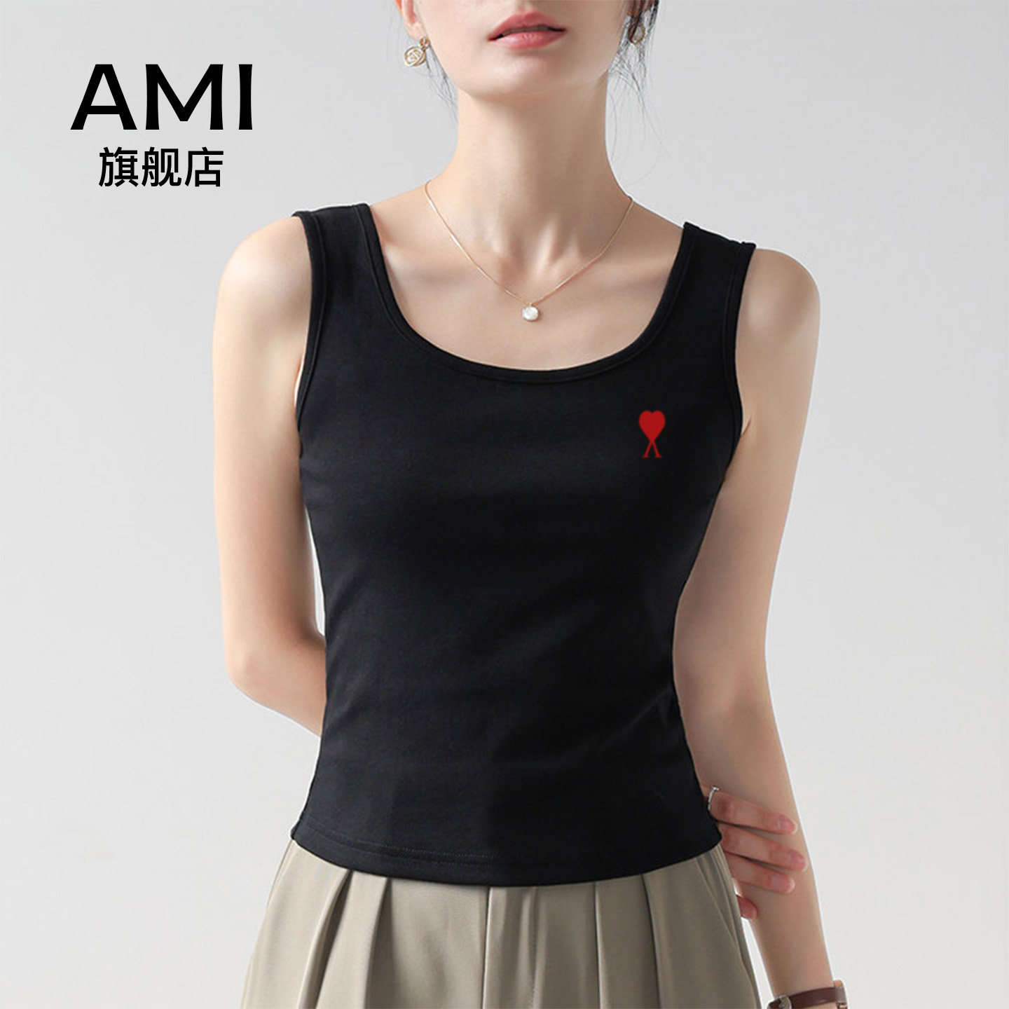 AMI官方白色吊带背心女内搭防走光2026夏百搭打底衫 上衣外穿 修身