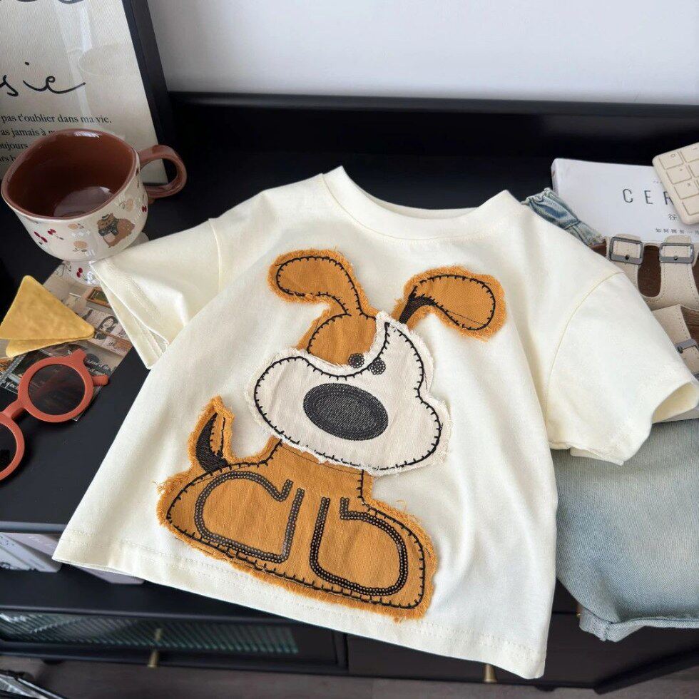 男女童贴布卡通半袖 上衣洋气 薄款 T恤夏季 欧弟狗 儿童纯棉短袖由