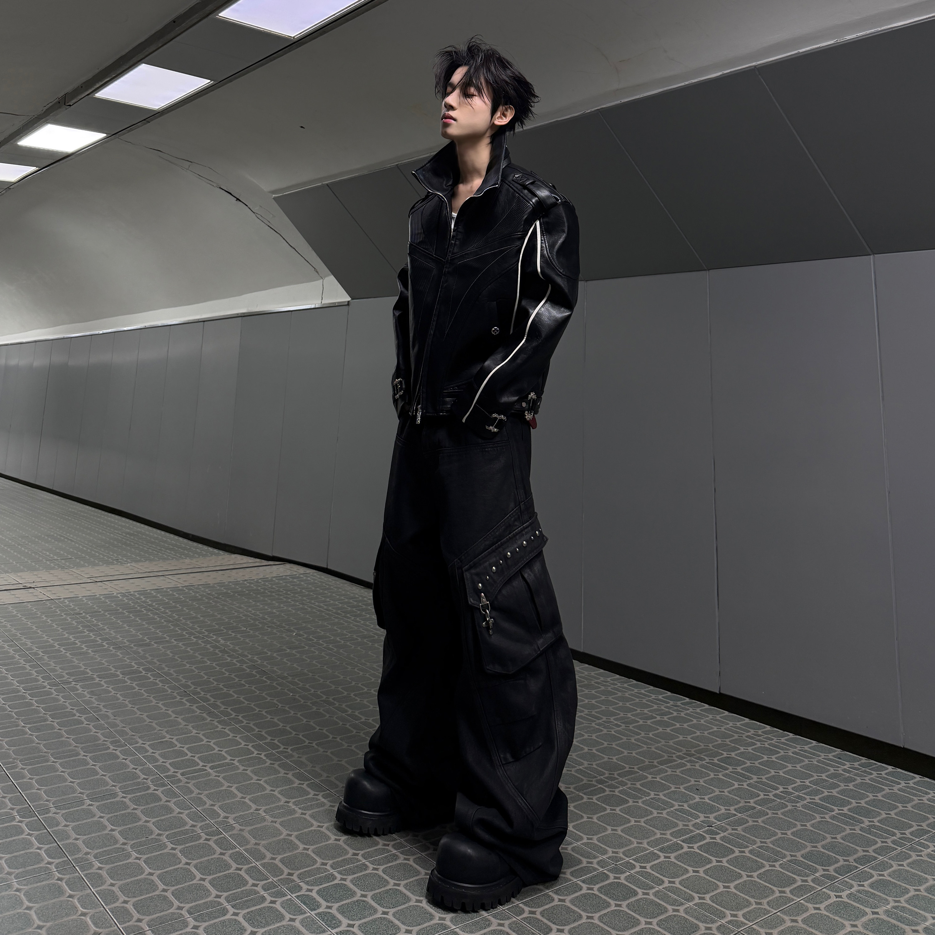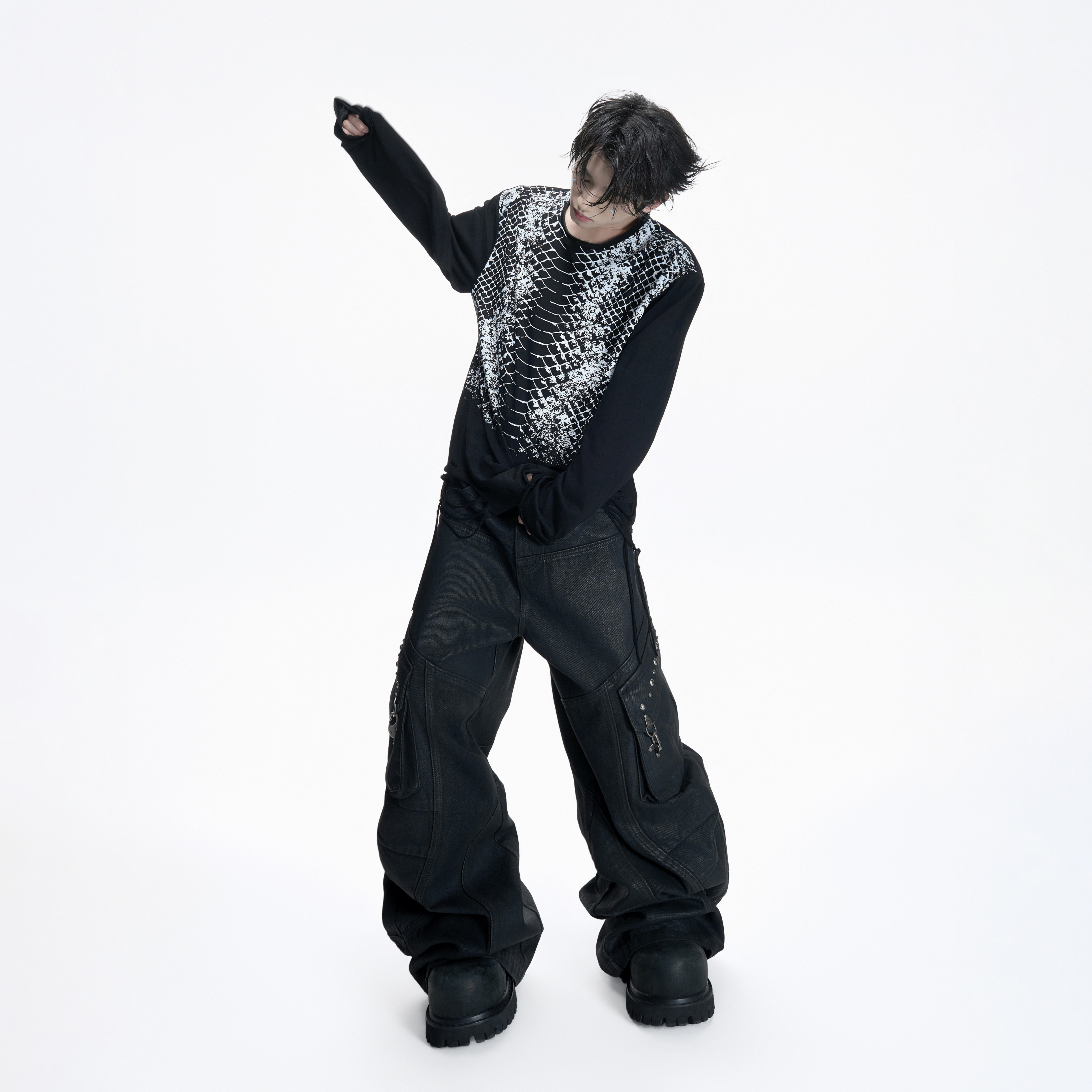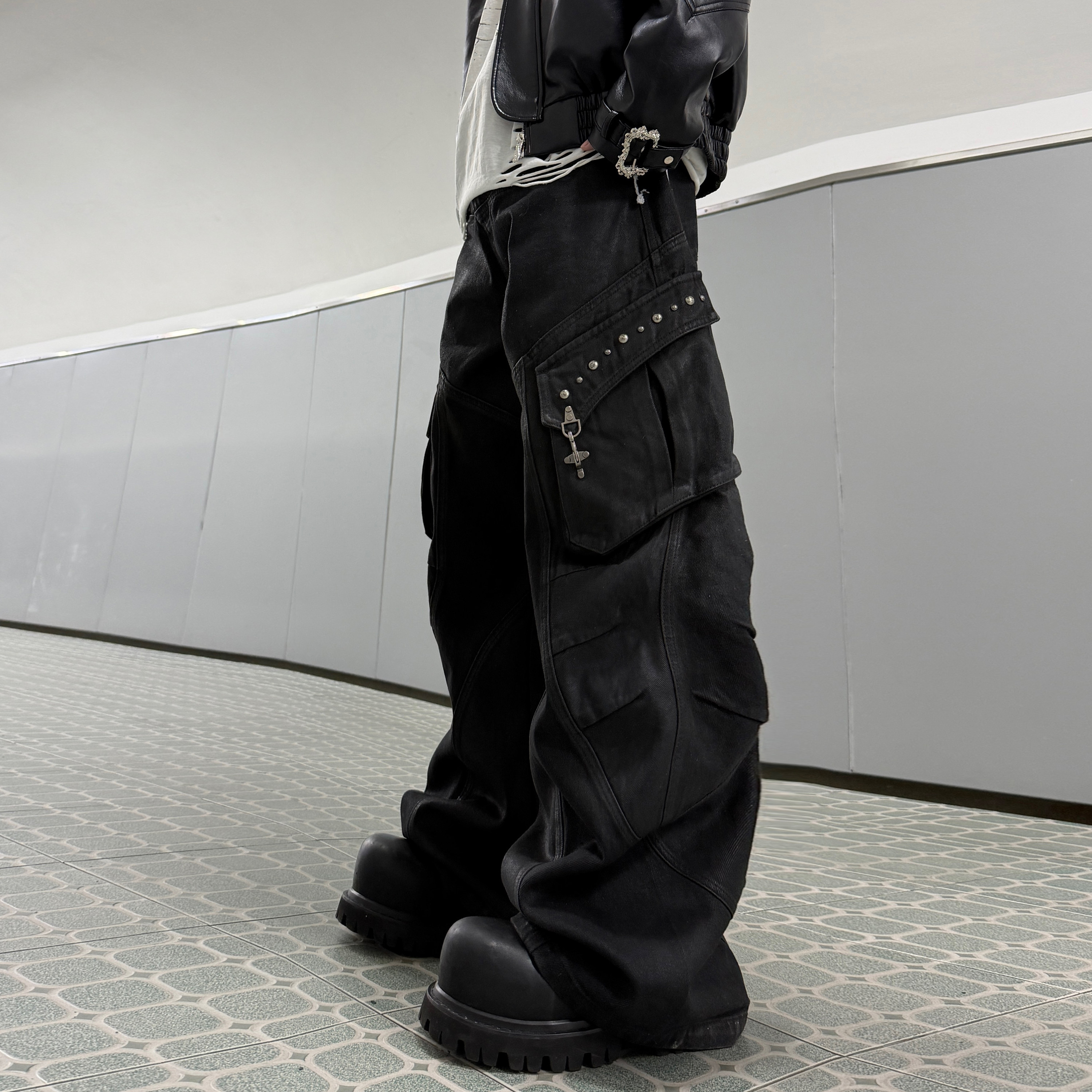 双褶弯刀工装 ArguE CulturE焦躁 刷蜡漆面立体多口袋重磅牛仔裤 裤由