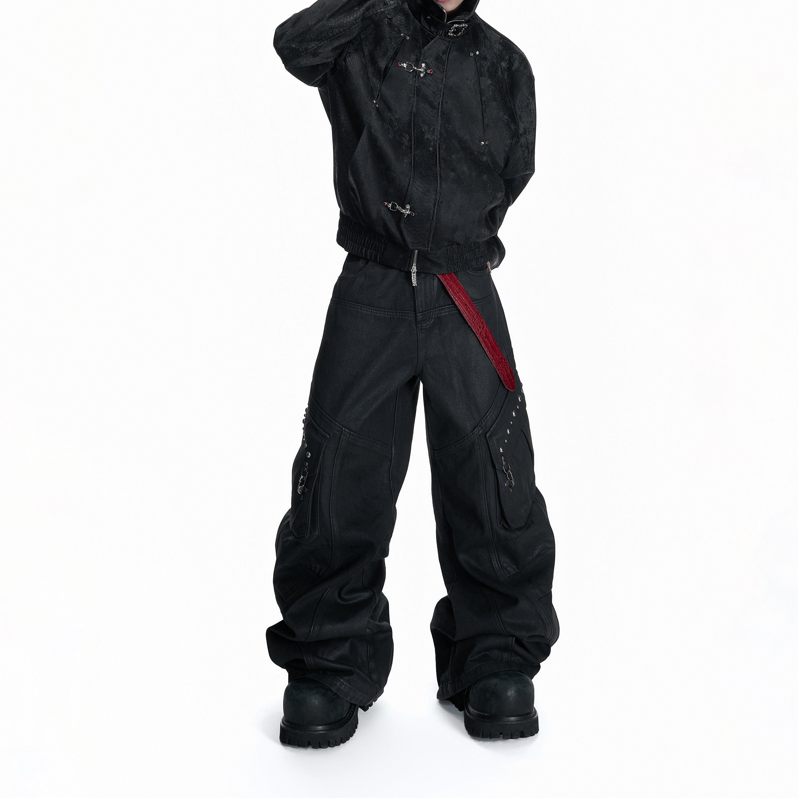 双褶弯刀工装 ArguE CulturE焦躁 刷蜡漆面立体多口袋重磅牛仔裤 裤