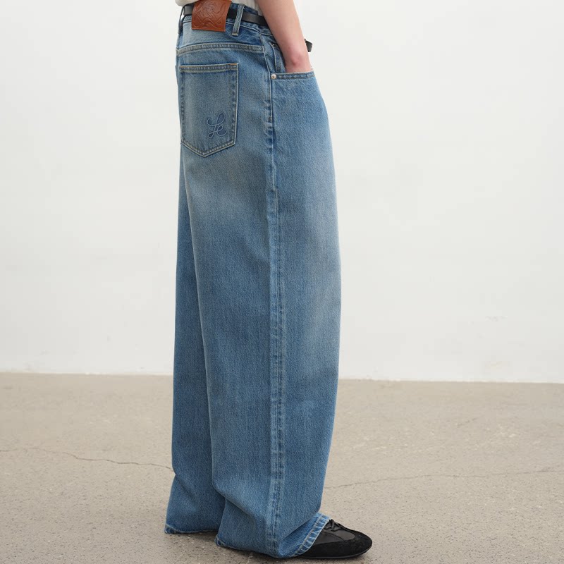 复古港风松弛拖地长裤 森马牛仔裤 春季 26新款 直筒裤 女莱赛尔阔腿裤