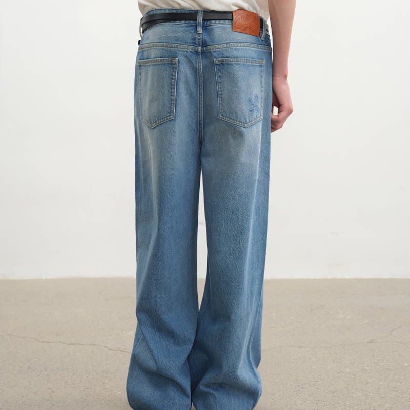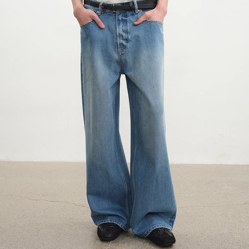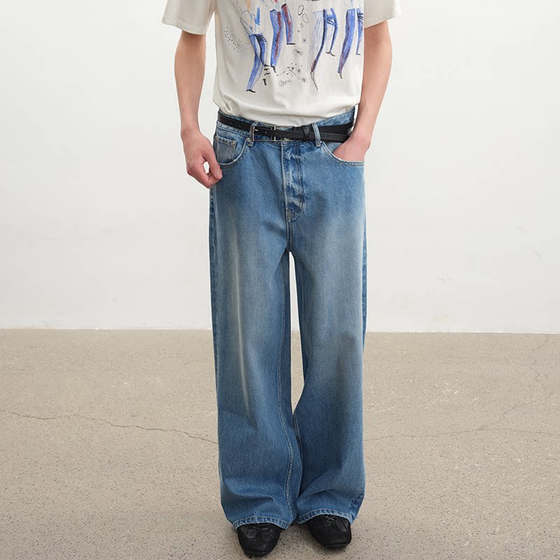 悟空有货cleanfit街头复古浅色牛仔裤 子 男潮牌宽松休闲直筒拖地裤