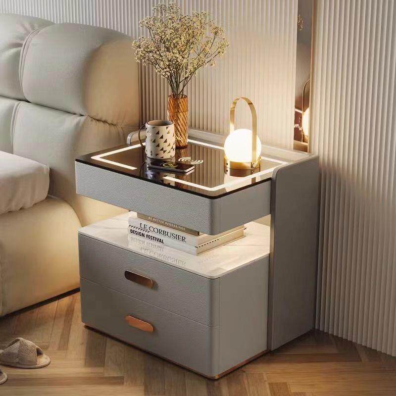 智能床头柜家用卧室多线功能无木OME充带灯整理柜奢实收纳床边柜由