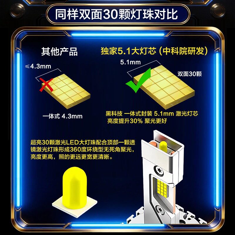 9012车灯h11强光 汽车LED大灯激光h1灯泡h7超亮h4远近一体9005改装