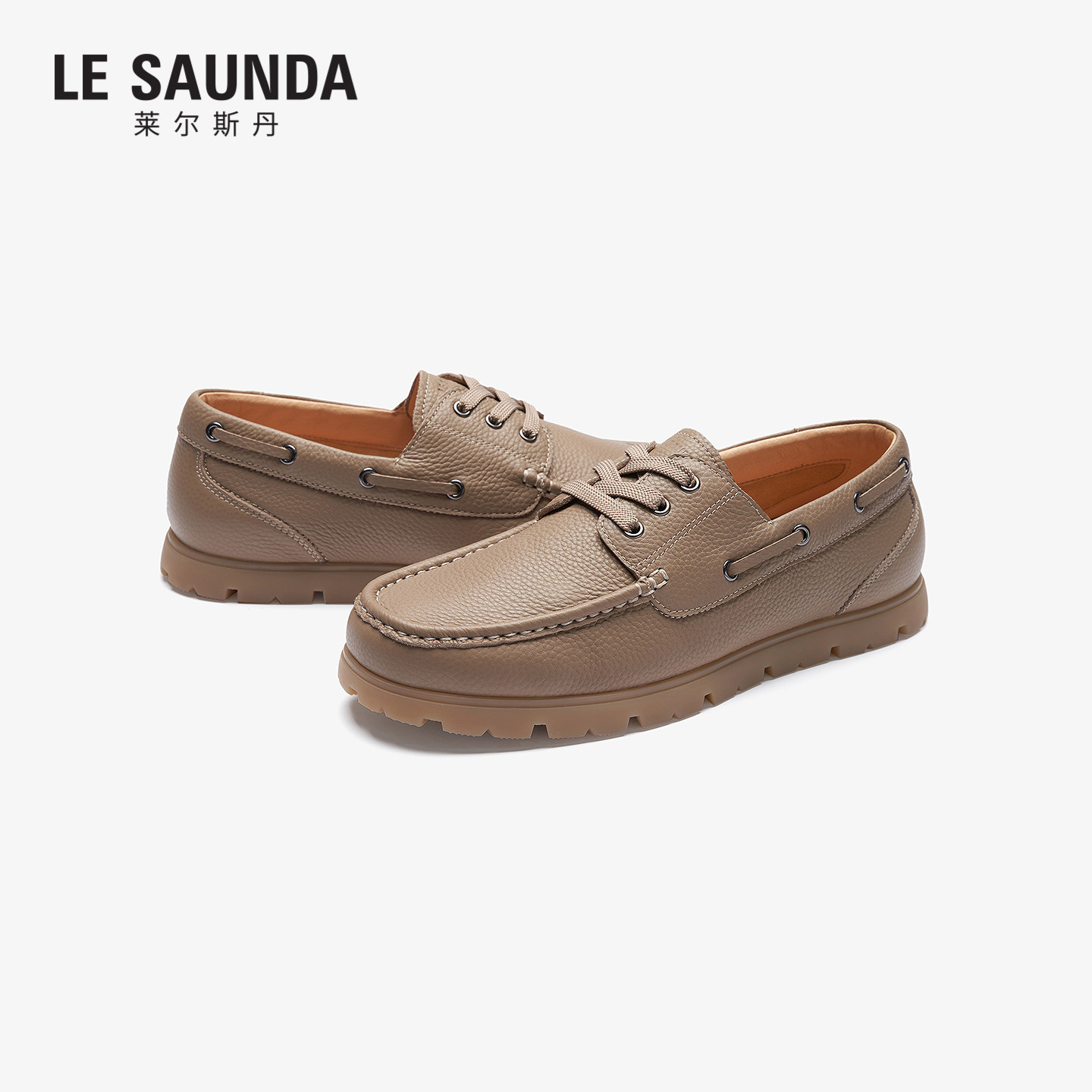 莱尔斯丹2026春季 休闲系带棕色真皮男士 豆豆乐福男鞋 7MM89102 新款由