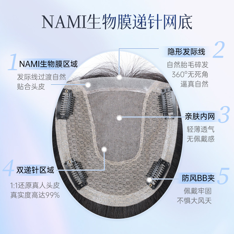 NAMI生物膜递针假发片女全真发头顶补发片蓬松增发量遮白发无痕由
