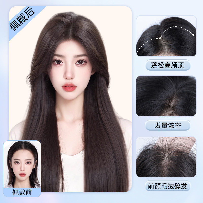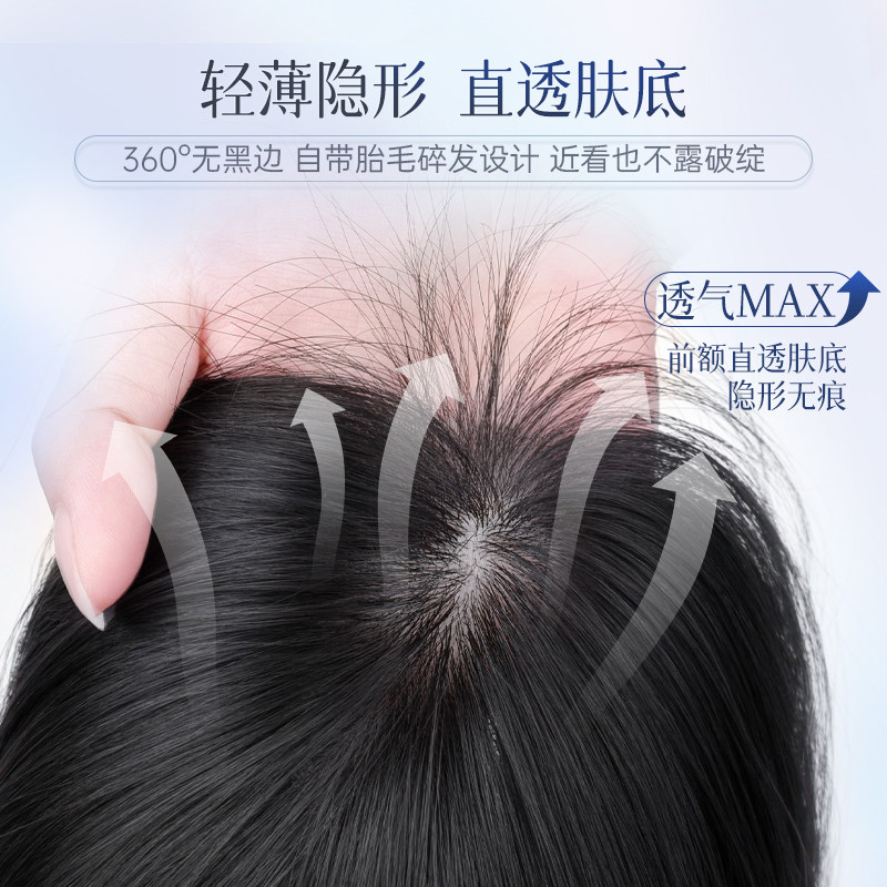 全真人头顶直发片垫发根高颅顶隐形无痕真发神器 瑞贝卡假发一片式