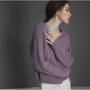 毛衣羊绒衫 女式 羊毛拉毛毛衣羊绒羊毛圆领V领无缝羊绒拉毛针织衫由