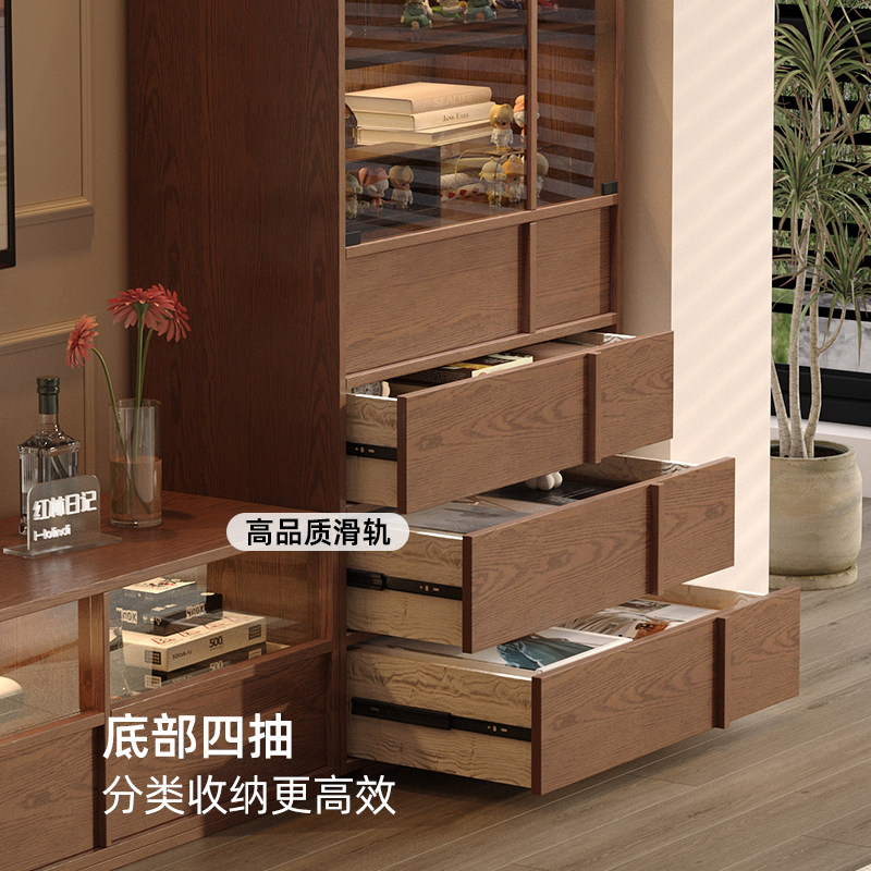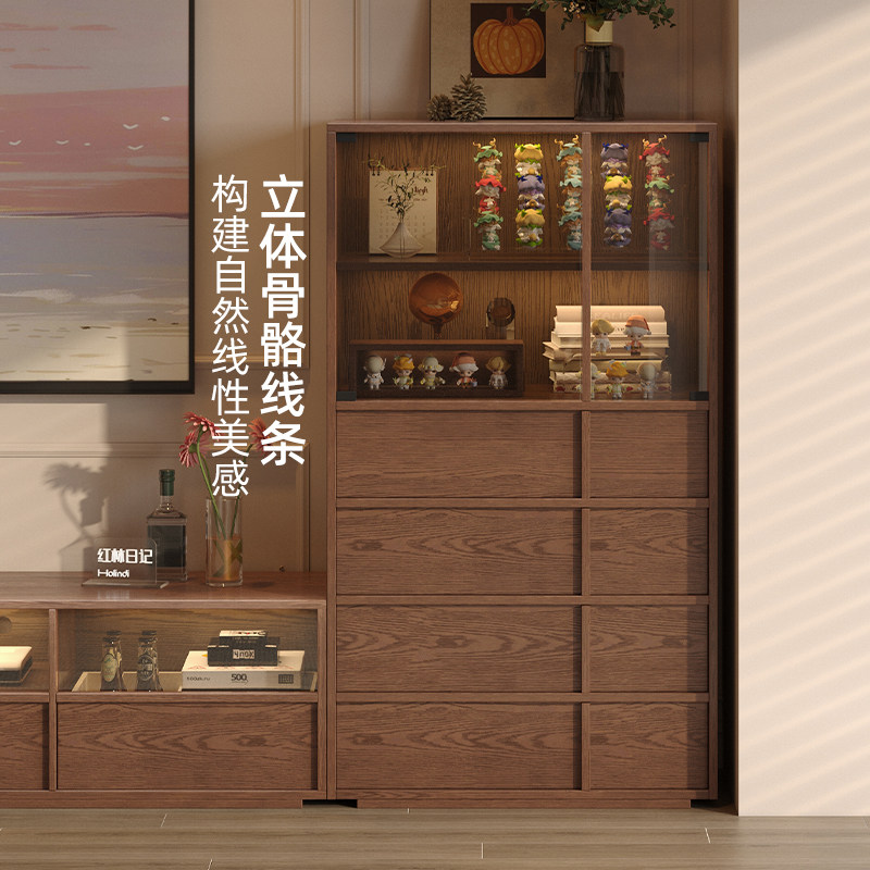 为您提供商品红林日记实木酒柜客厅靠墙一体收纳柜家用玻璃门储物展示柜茶水柜的详细介绍,