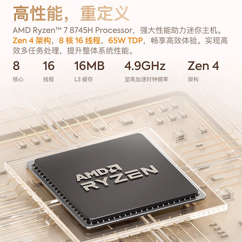 锐龙R7 铭凡MINIS 8745H办公迷你主机电脑 AMD Slim FORUM UM870由