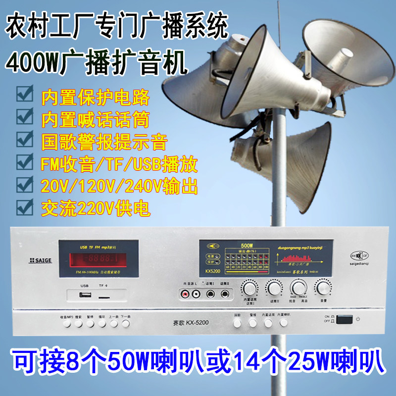 400W农村工厂学校防雨水高音号角广播高音喇叭定压扩音机村委功放