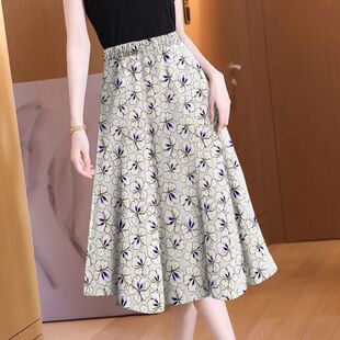 为您提供商品2024新款 洋气印花垂感高腰裙显瘦遮肉过膝大摆裙 女装 半身裙中长款的详细介绍,