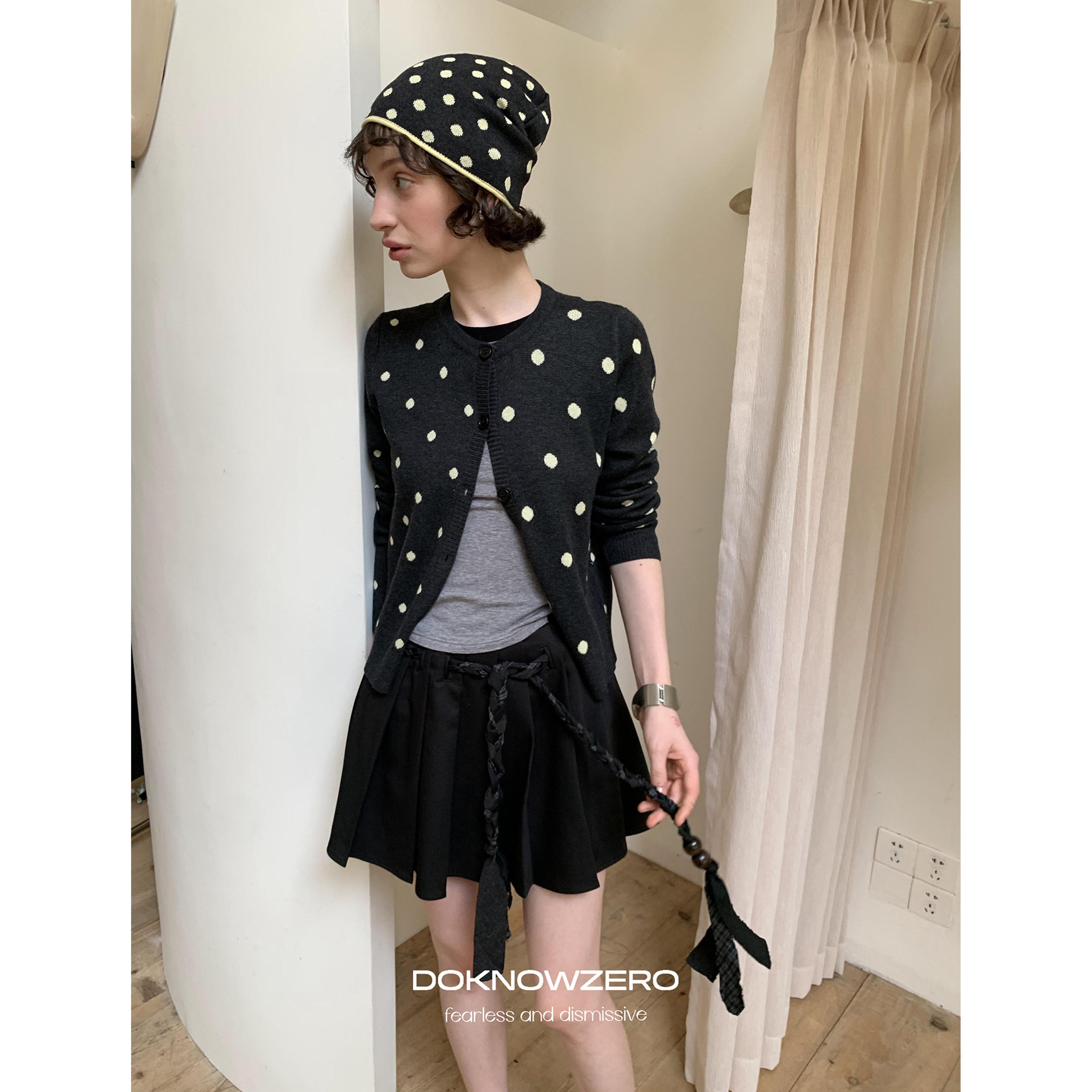 DKZ 女秋季 新款 复古圆领毛衣外套 深灰色波点针织开衫由