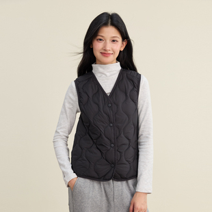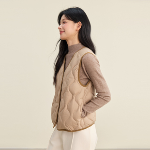 雪中飞2026春新款 V领日系通勤简约百搭保暖外套 羽绒马甲女短款由