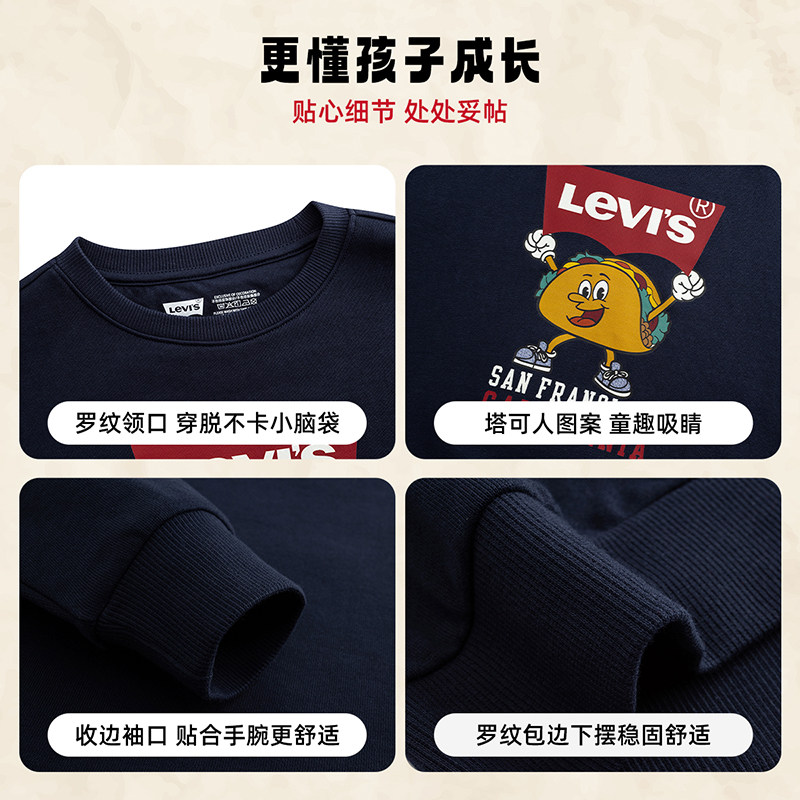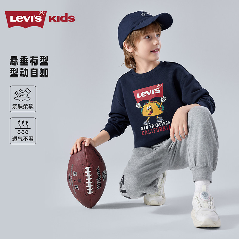 李维斯童装 2026春季 新款 中大童女童休闲上衣纯棉 儿童卫衣男童长袖由