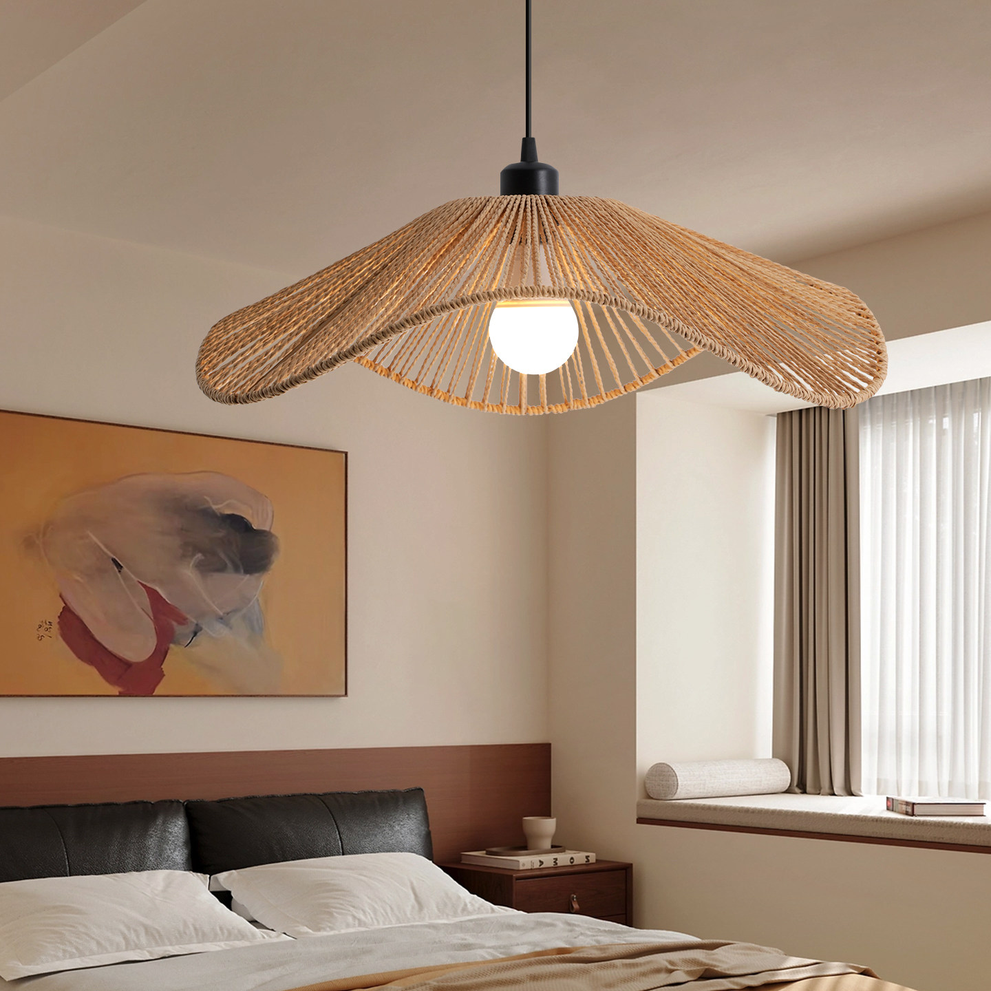 为您提供商品侘寂风卧室书房民宿吧台灯具 麻绳吊灯餐厅灯复古禅意草帽吊灯日式的详细介绍,