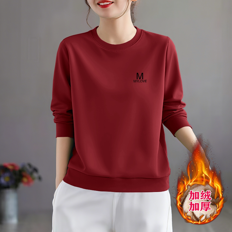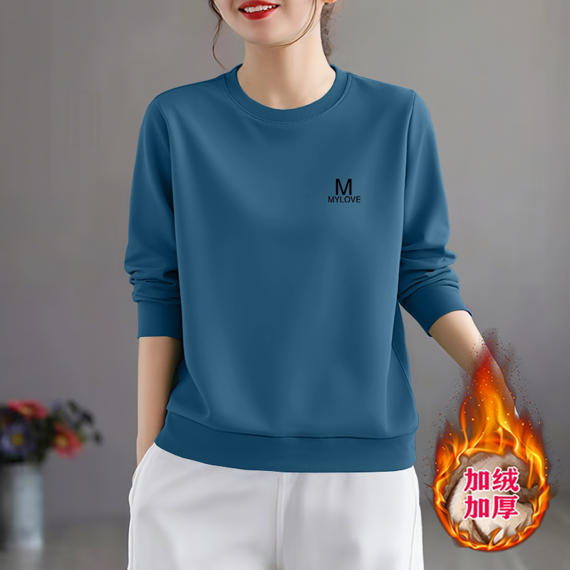 简约新款 休闲时尚 长袖 上衣圆领秋冬加绒加厚女士卫衣 洋气宽松大码