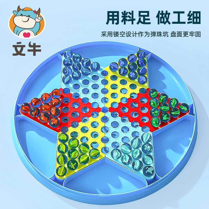 跳跳棋儿童益智小学生玻璃球大人版 飞行棋二合一弹珠跳子棋盘 老式由