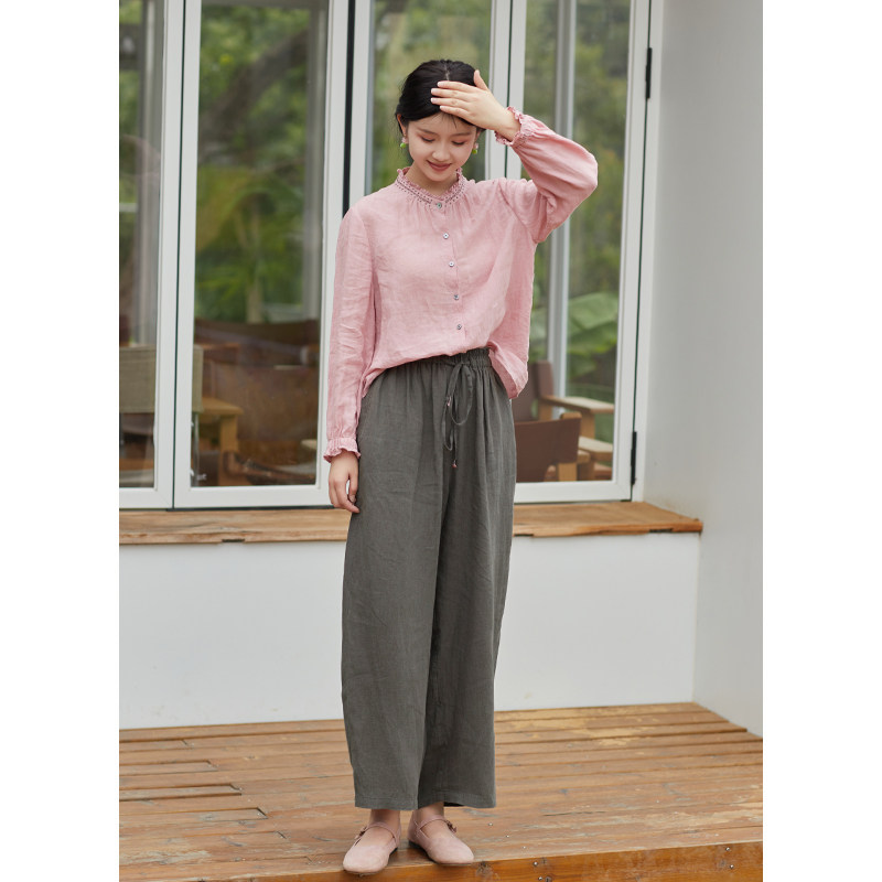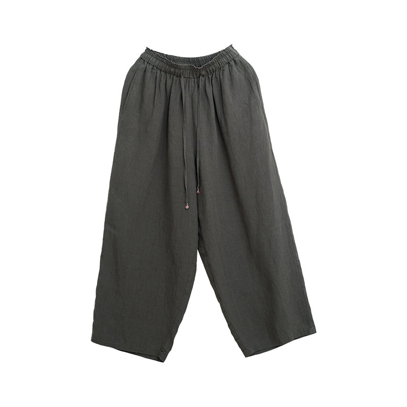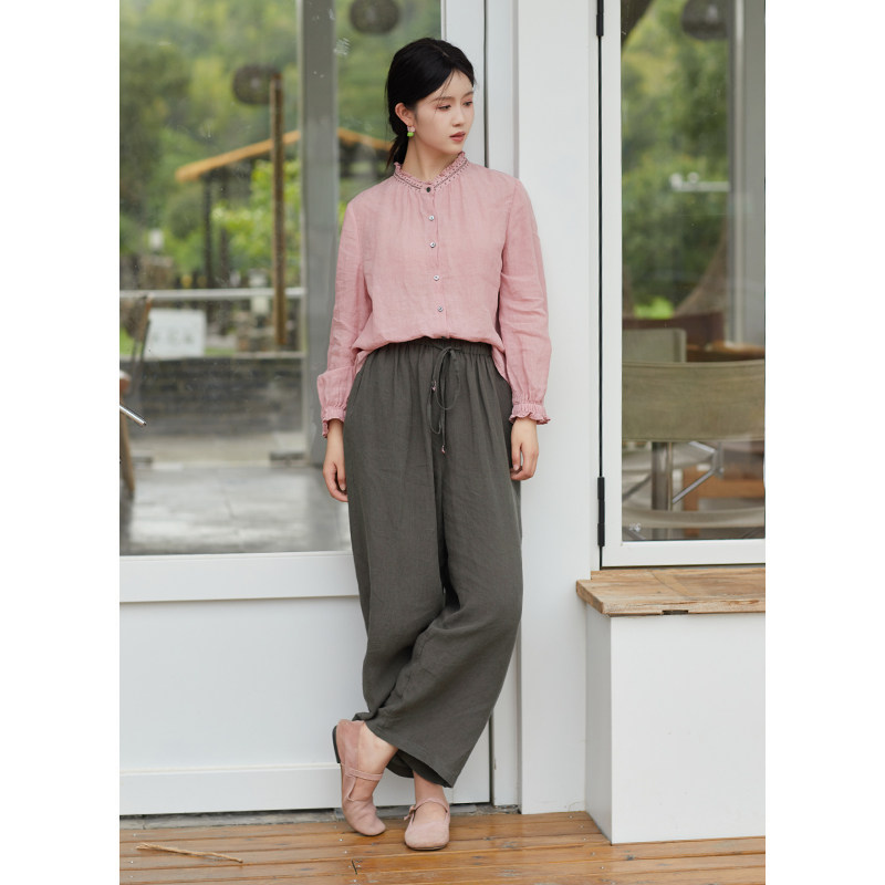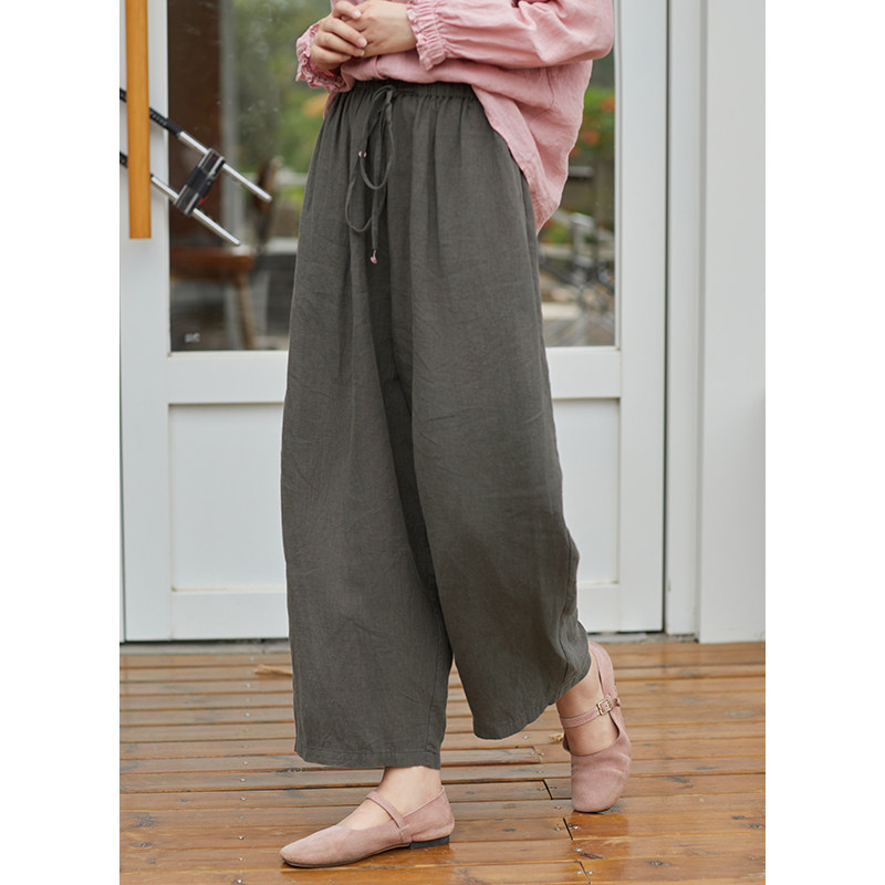 为您提供商品忘城N837座 早秋21支砂洗亚麻灰色显瘦直筒裤 系带裤 子 另一种热情的详细介绍,