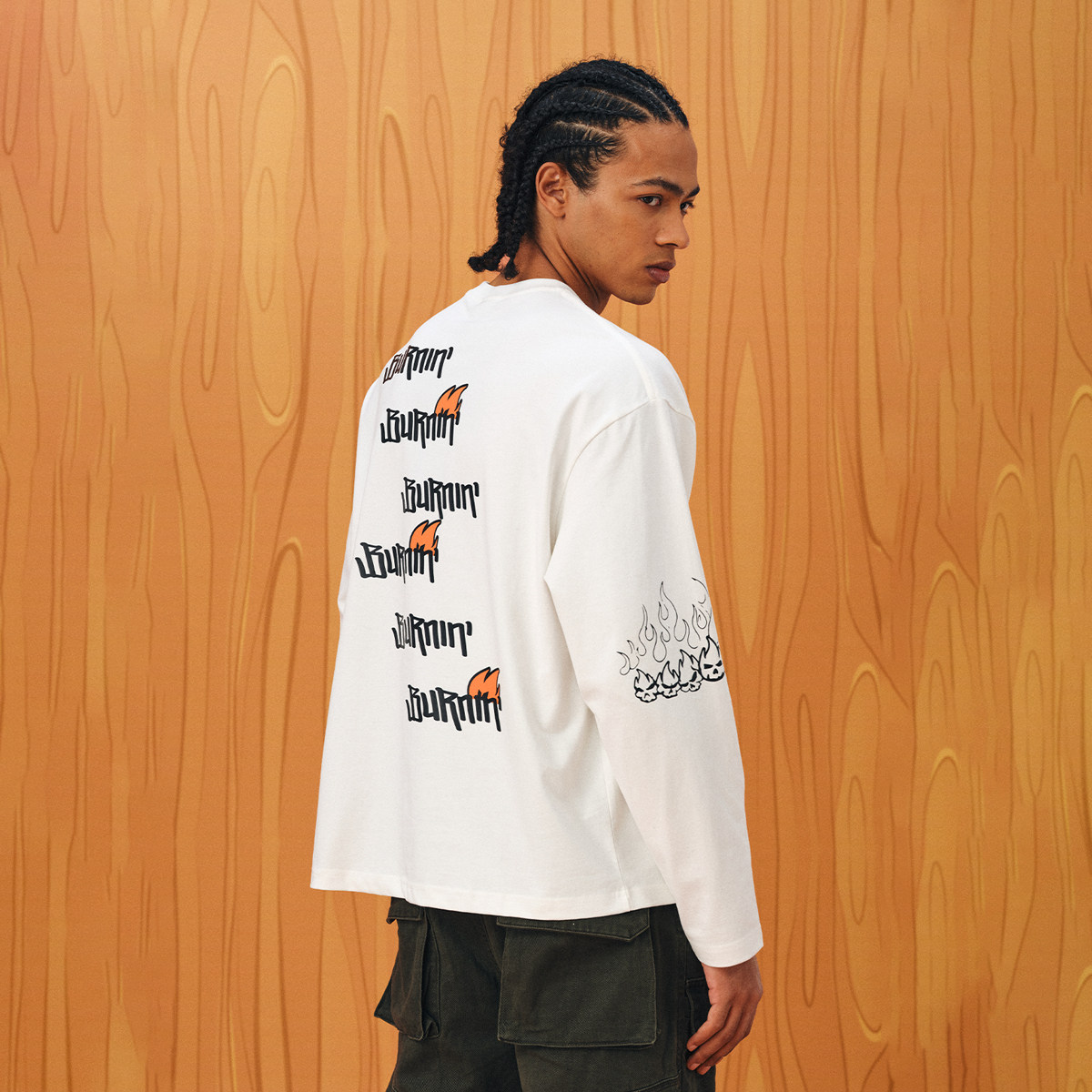 LA短袖 宽松百搭印花上衣白色11 T恤男女情侣落肩袖