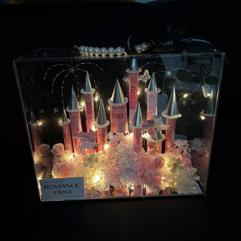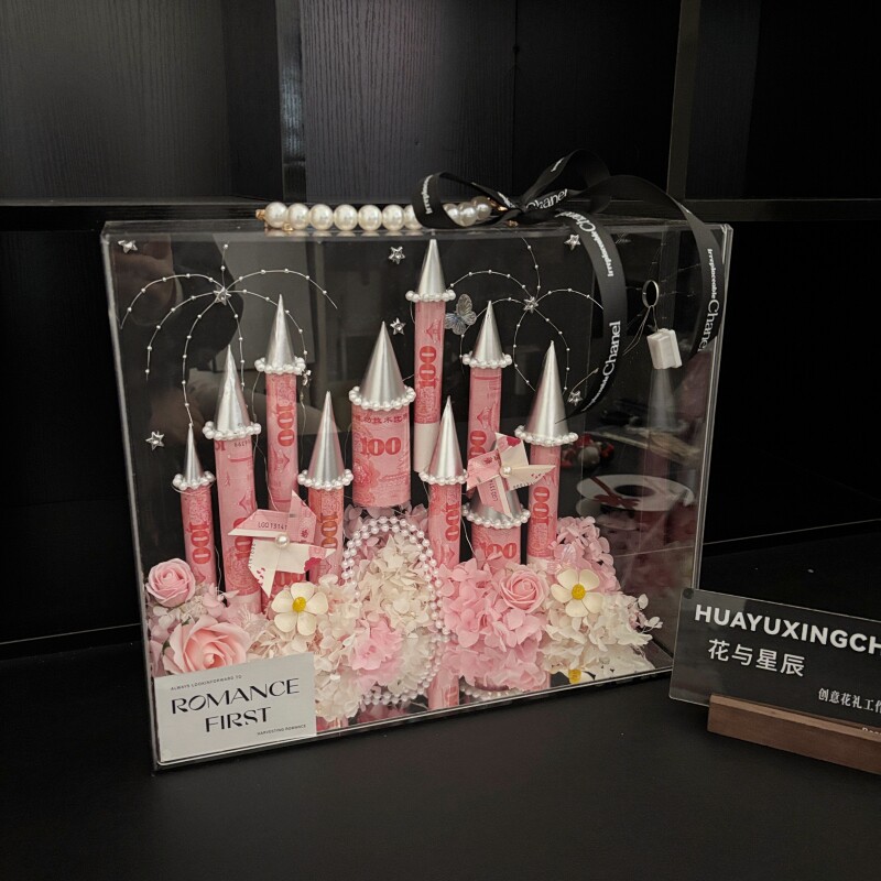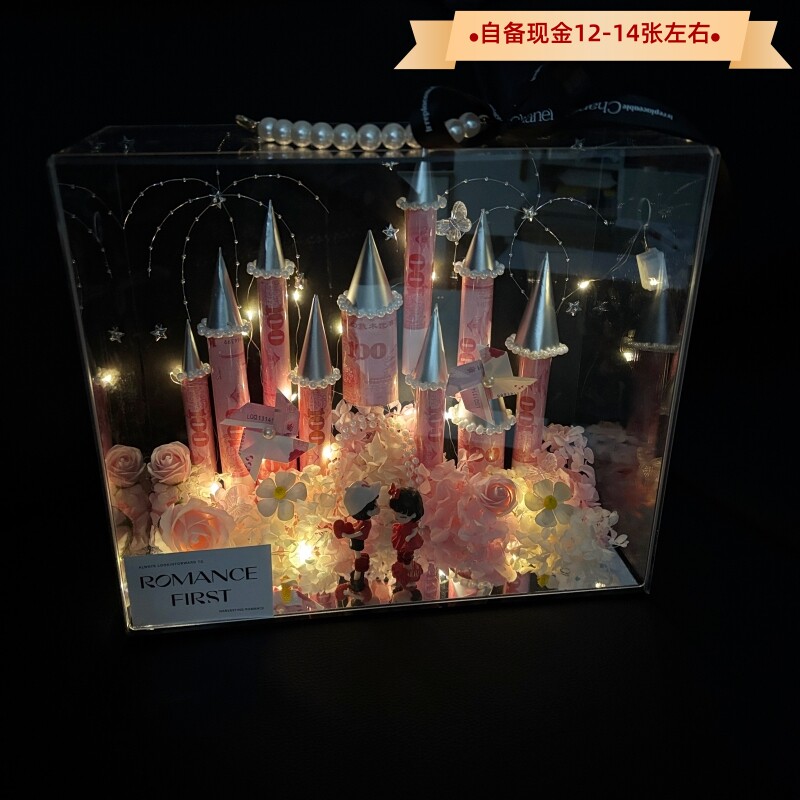 diy公主城堡有钱花手工风车花材料全套手提亚克力盒送女朋友礼物由