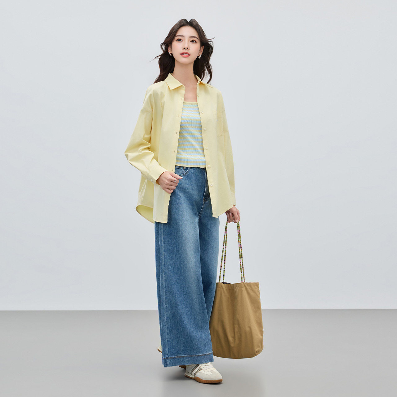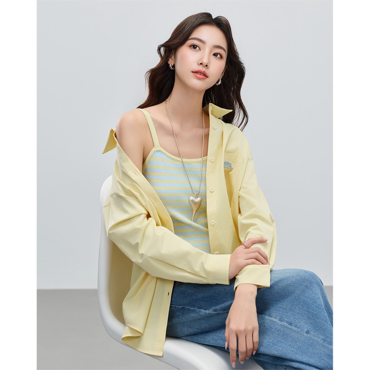 IEF 新款 休闲通勤气质百搭条纹背心衬衫 两件套上衣 爱依服2026春季