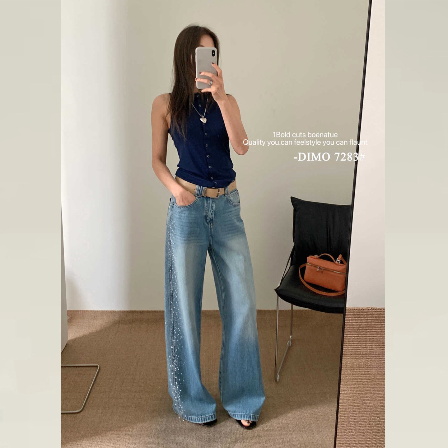 DIMO带钻牛仔裤 子7283 阔腿宽松2026早春新梨型身材粗腿宽跨显瘦裤