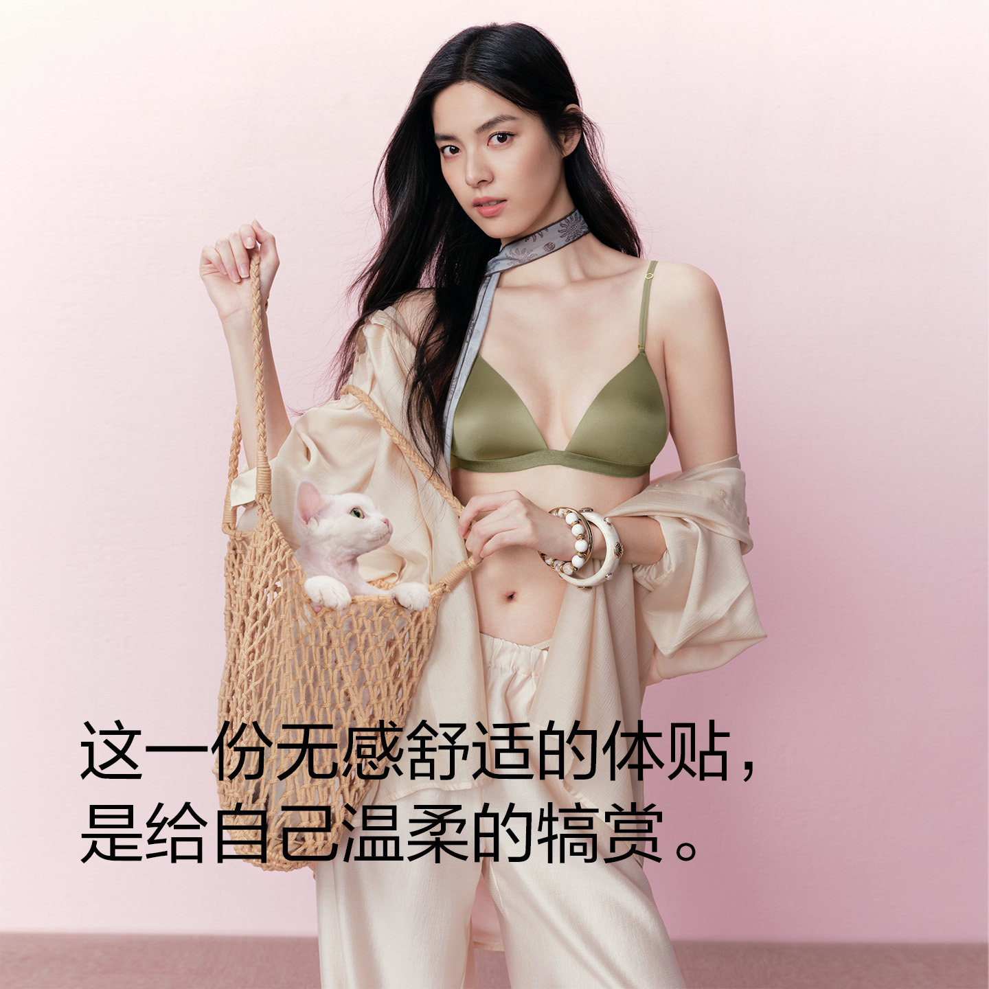 有棵树粉底液软支撑内衣女无痕隐形细肩带美背文胸 孟子义同款
