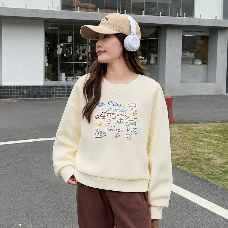 慵懒设计感复古时尚 快鱼春季 2026新品 女卫衣卡通美式 卫衣 百搭长袖由