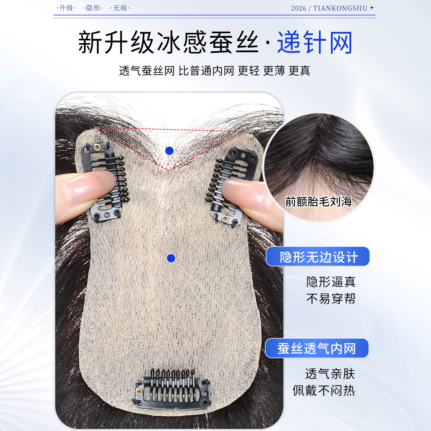 递针假发女片头顶真发遮白发蓬松高颅顶增发量自然前额无痕补发片