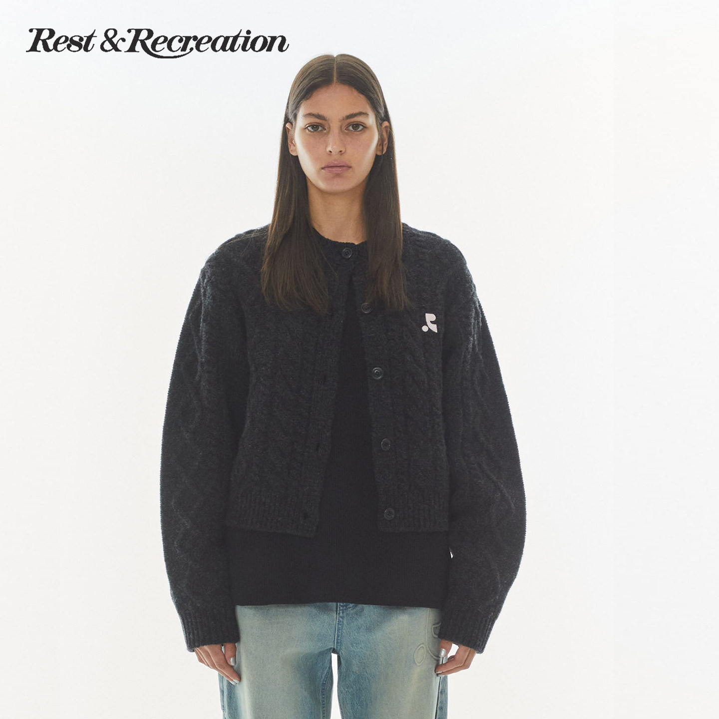 RestandRecreation官方2026RR早春粗麻花肌理感logo刺绣针织开衫