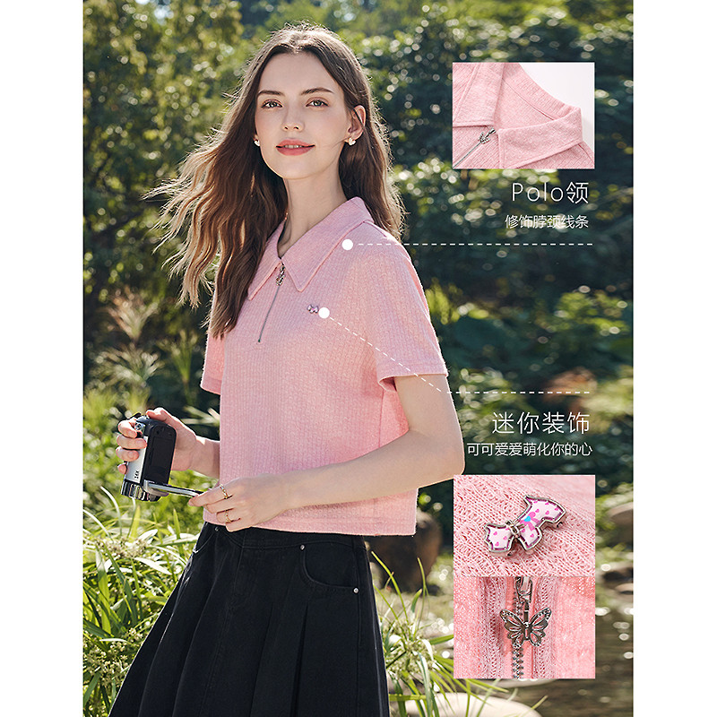 为您提供商品短袖 betu百图可盐可甜短款 半开领T恤女2026年春季 新款 上衣小衫的详细介绍,
