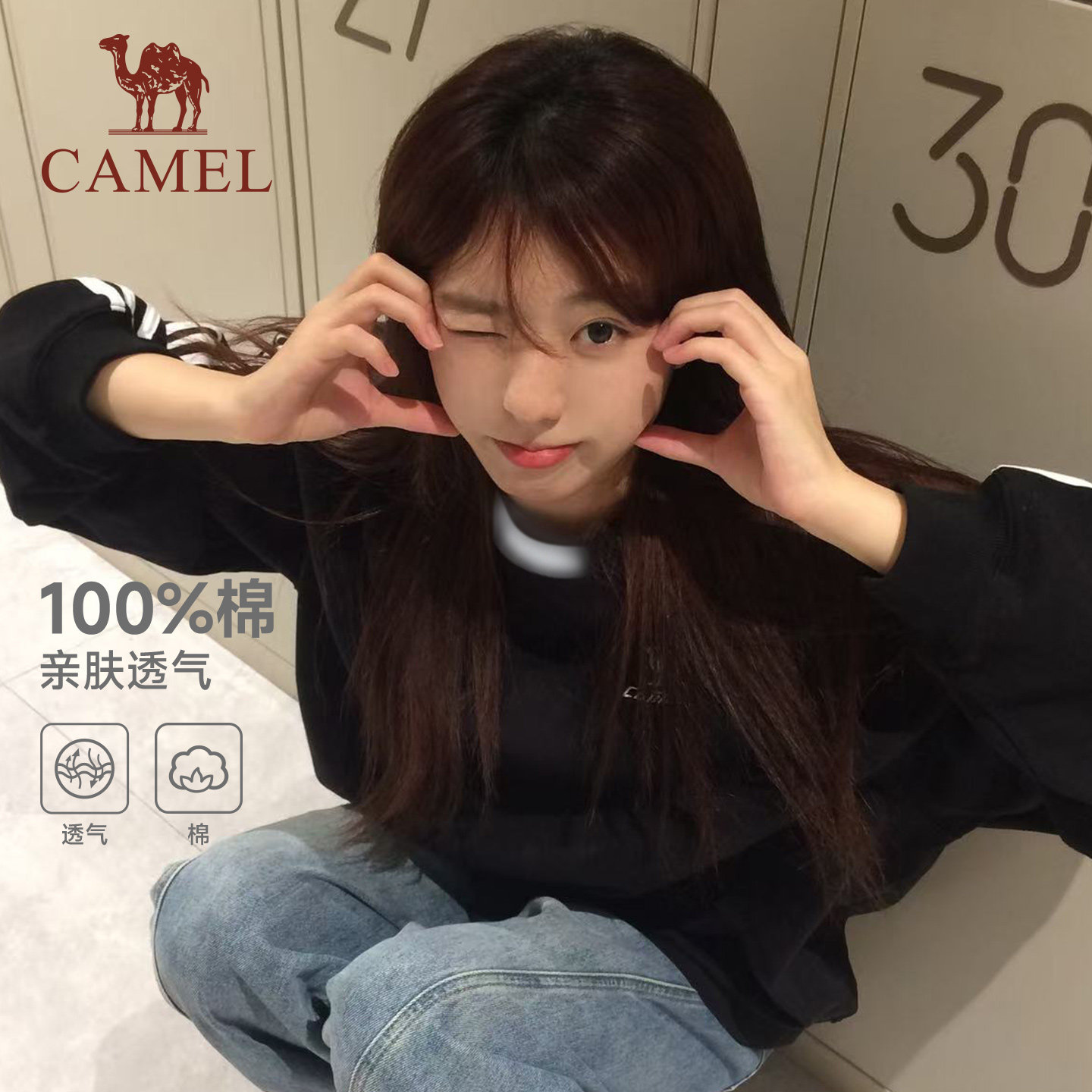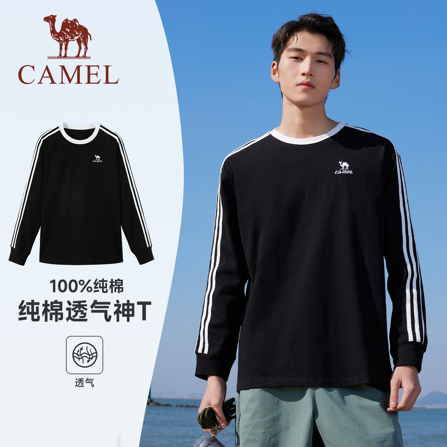 为您提供商品男女款 透气三条杠休闲卫衣 T恤2026春秋季 骆驼柔绵t神圆领长袖的详细介绍,