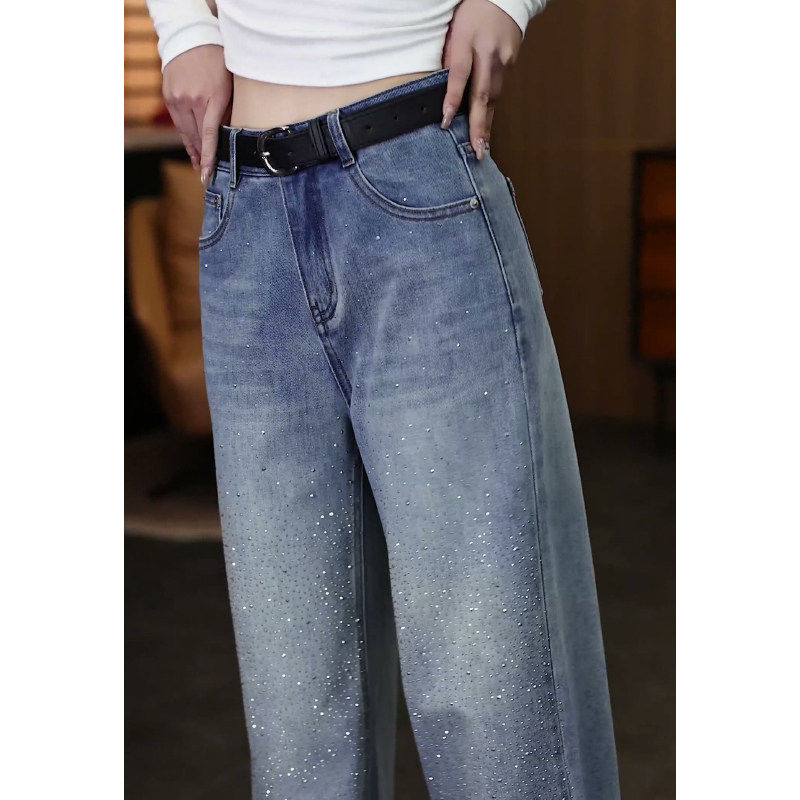 高档带钻阔腿牛仔裤 2026新款 高腰宽松垂坠感休闲直筒裤 子春 女春季