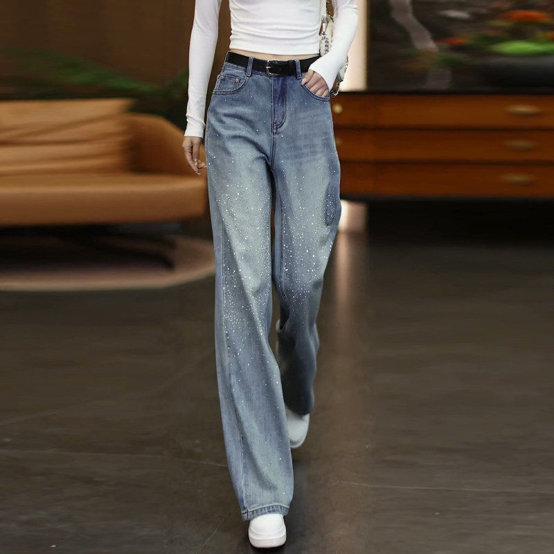 为您提供商品高档带钻阔腿牛仔裤 2026新款 高腰宽松垂坠感休闲直筒裤 子春 女春季的详细介绍,