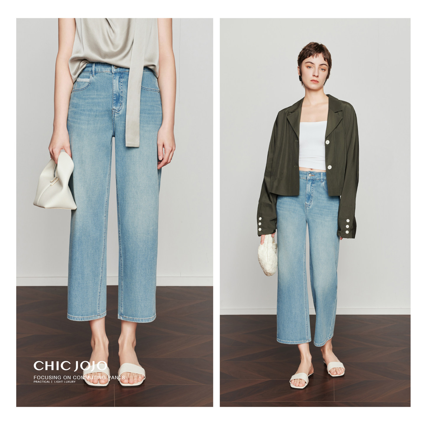 CHICJOJO牛仔裤 胶囊丹宁 直筒裤 蓝色四面弹九分裤 女26春新款由