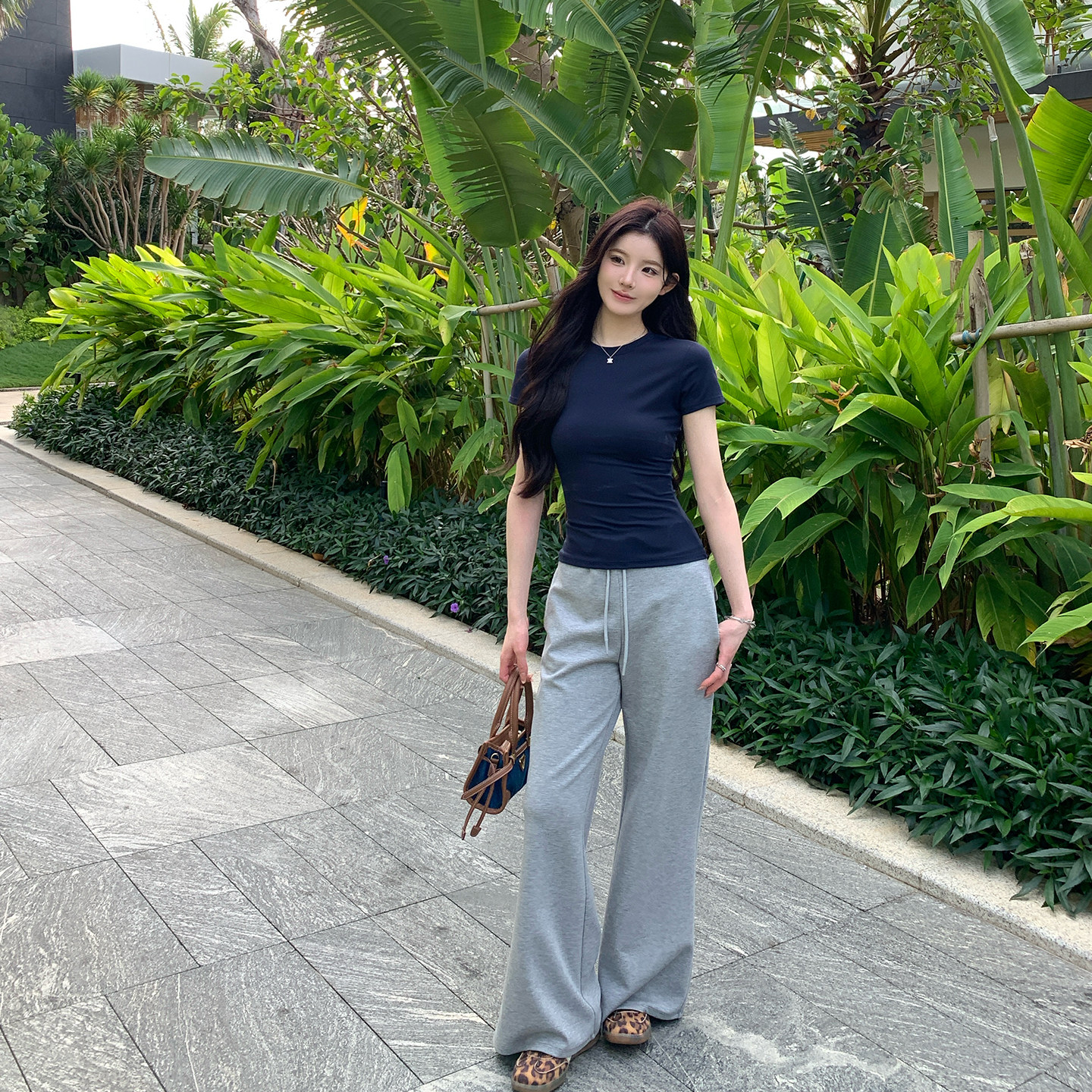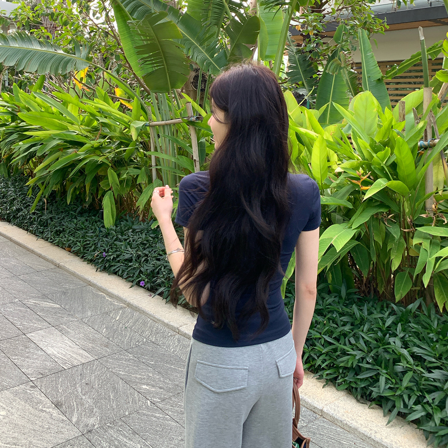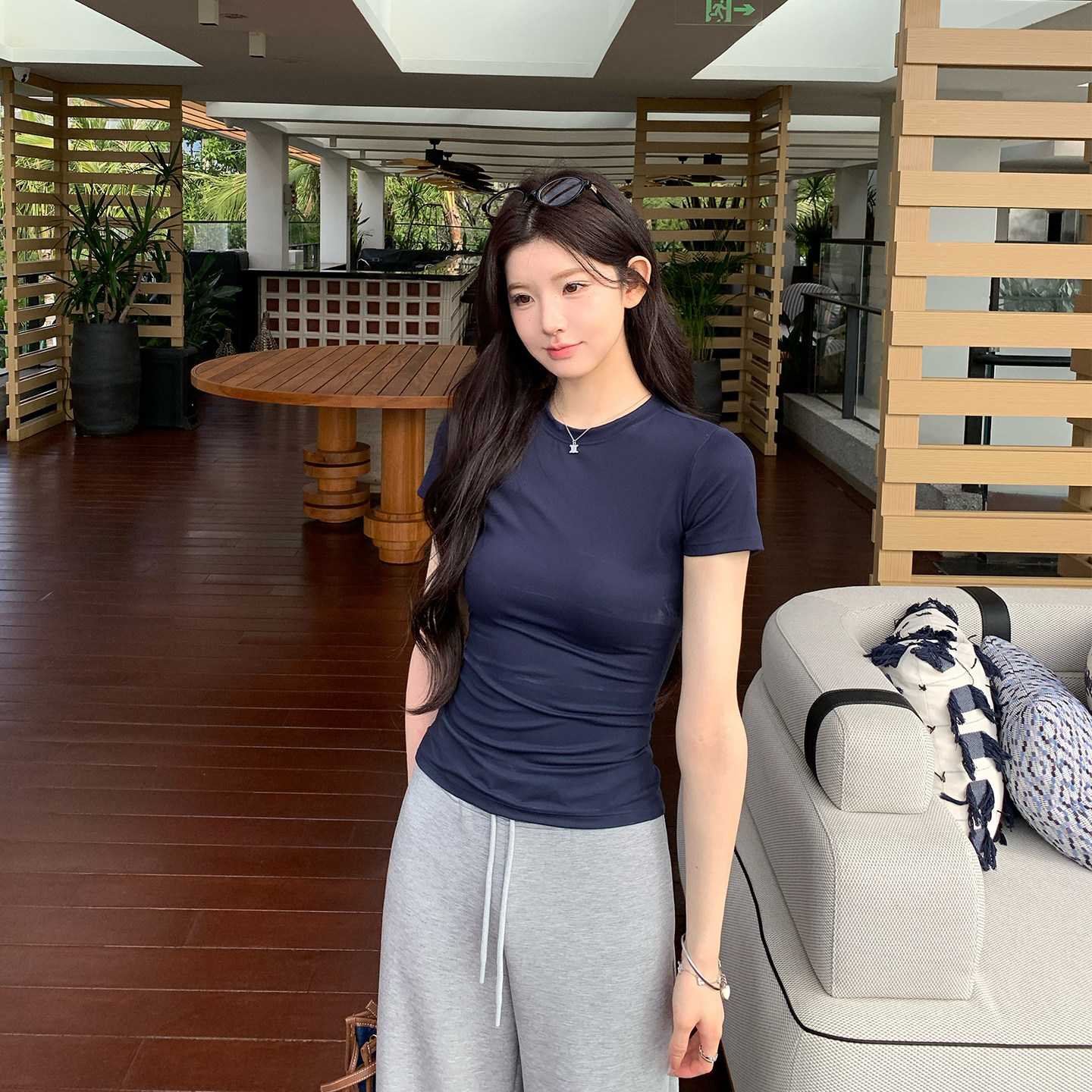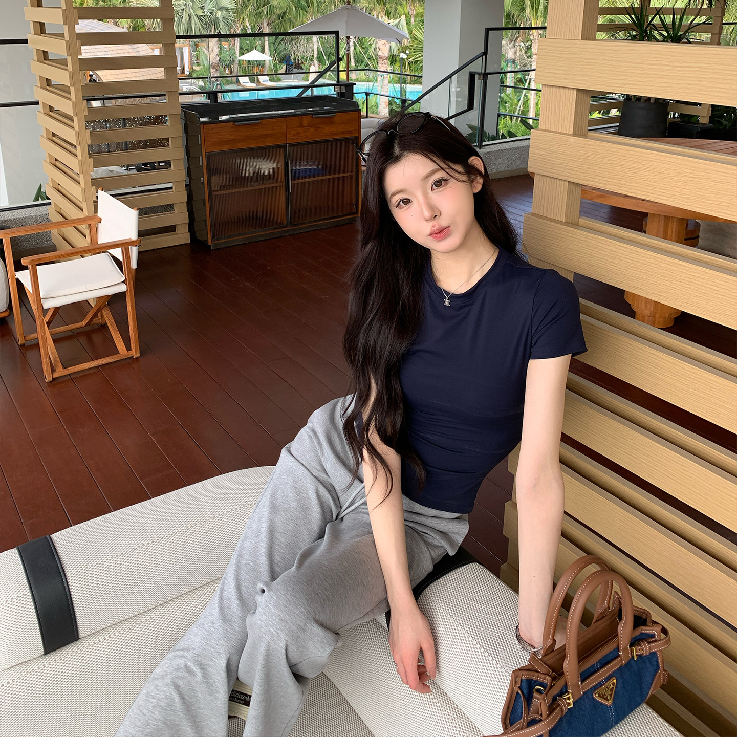 修身 alex 显瘦圆领纯色上衣 新款 T恤女夏季 stevens短款 正肩短袖由