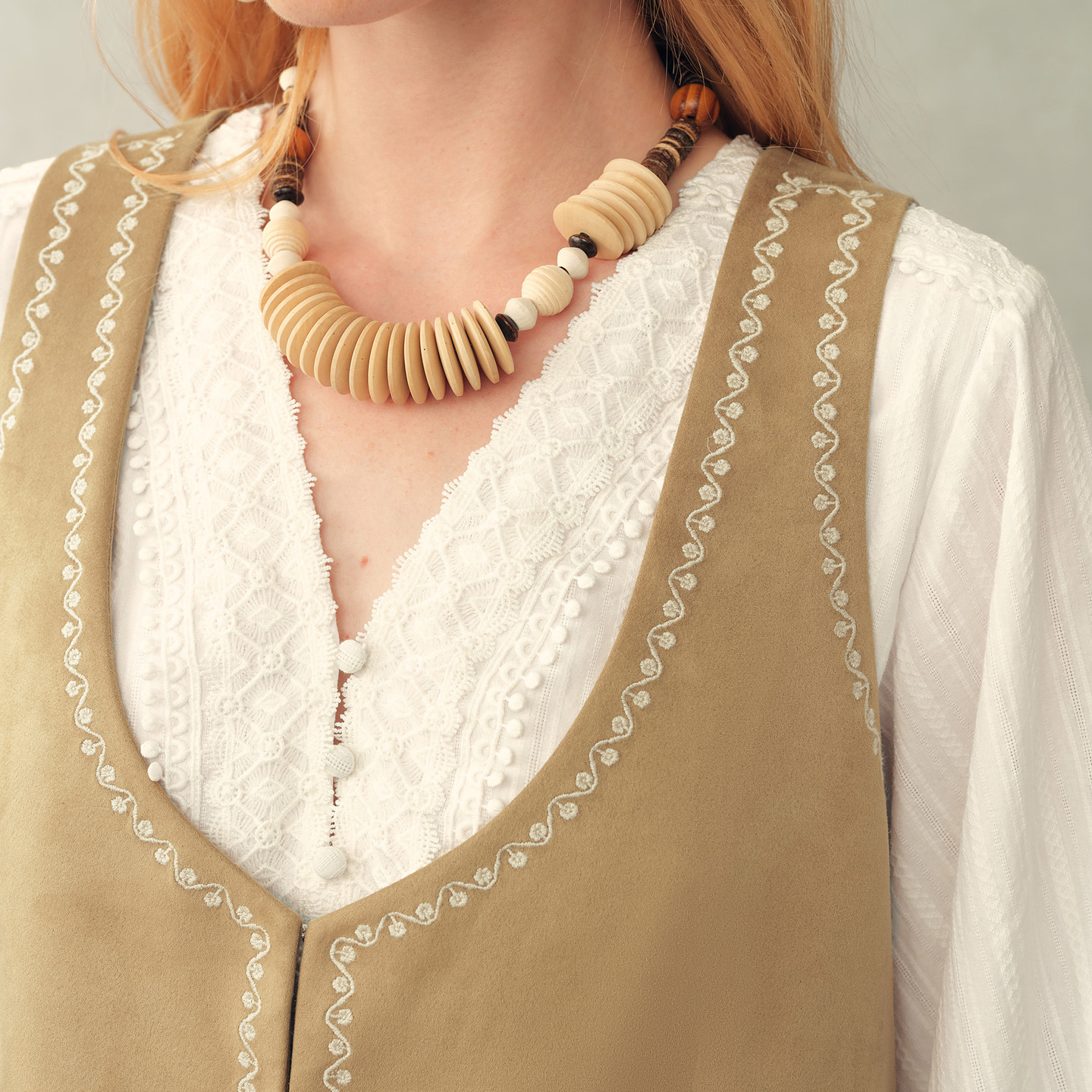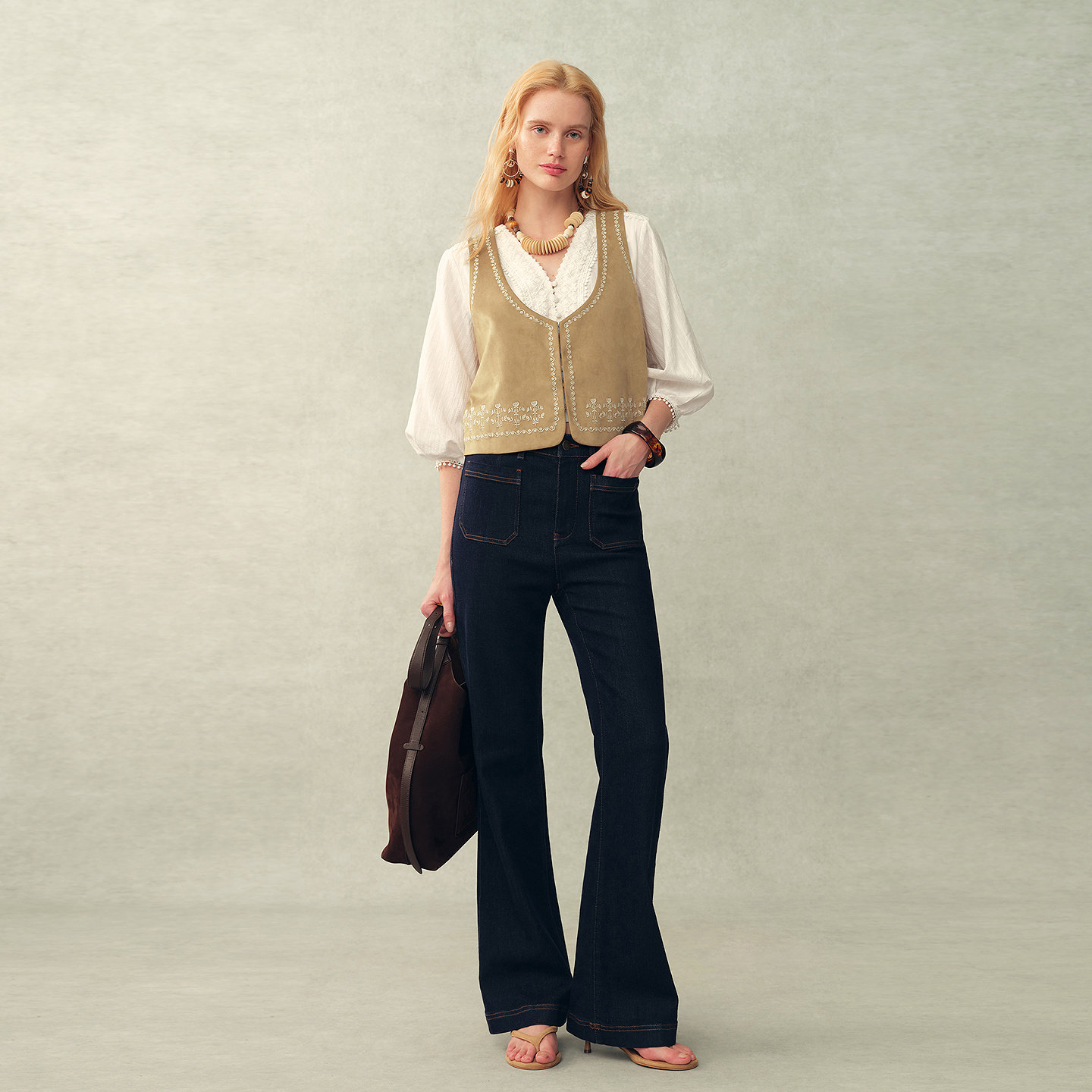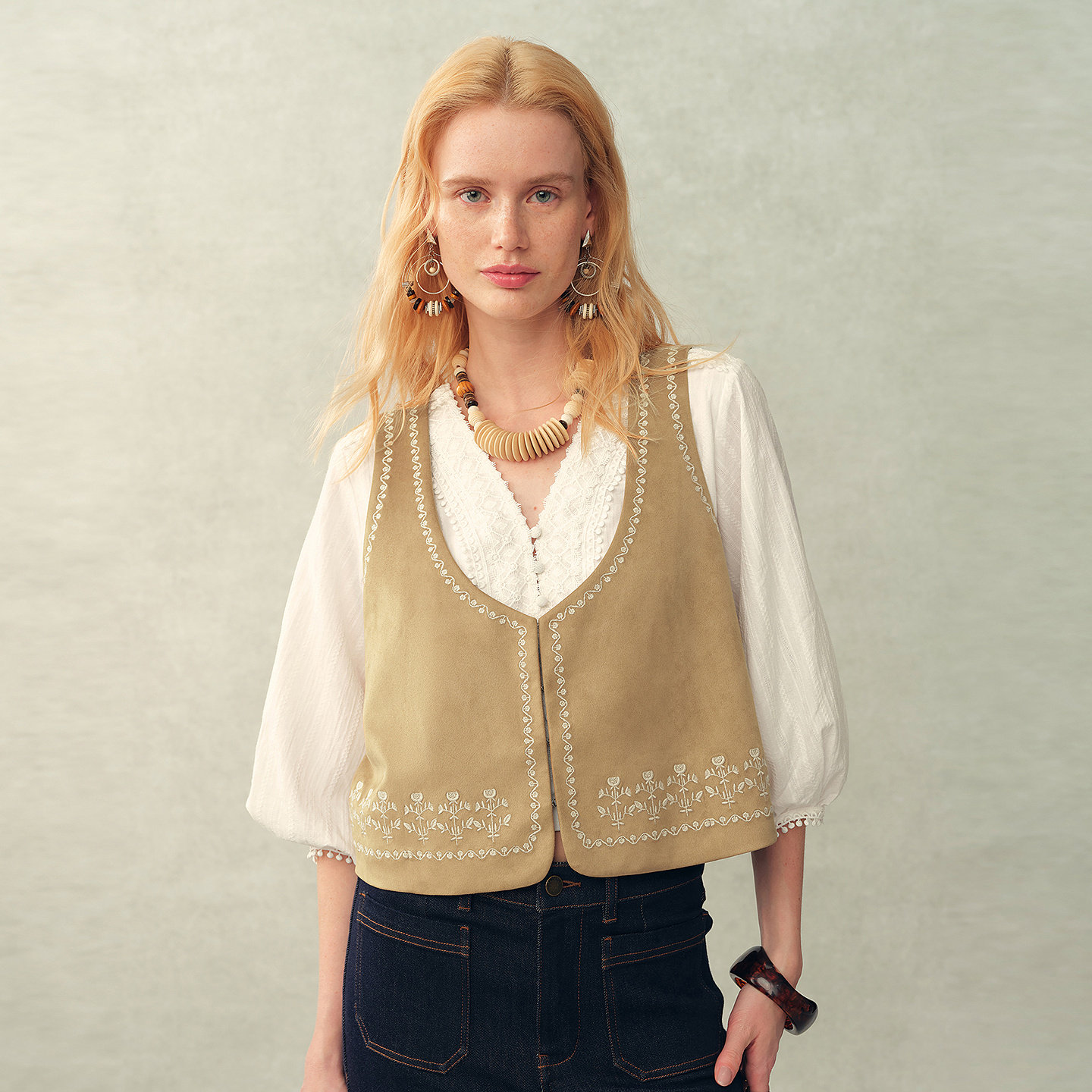 为您提供商品卡其色仿麂皮绒刺绣叠穿背心女26年早春 Fabrique西部牛仔马甲的详细介绍,