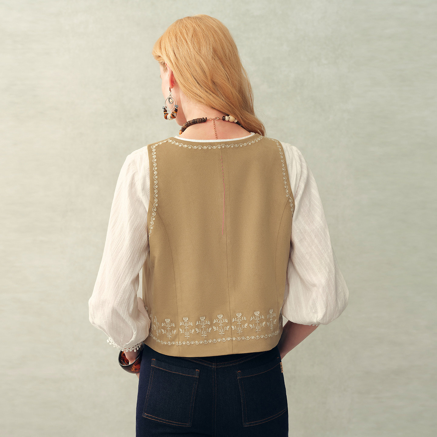 卡其色仿麂皮绒刺绣叠穿背心女26年早春 Fabrique西部牛仔马甲由