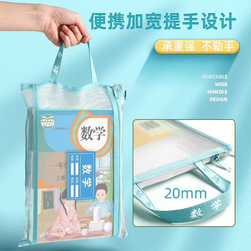 小学生初中生专用手提书袋高中生试卷资料书本作业袋子档案科目分类袋 双层大容量A4透明网纱文件收纳袋拉链式