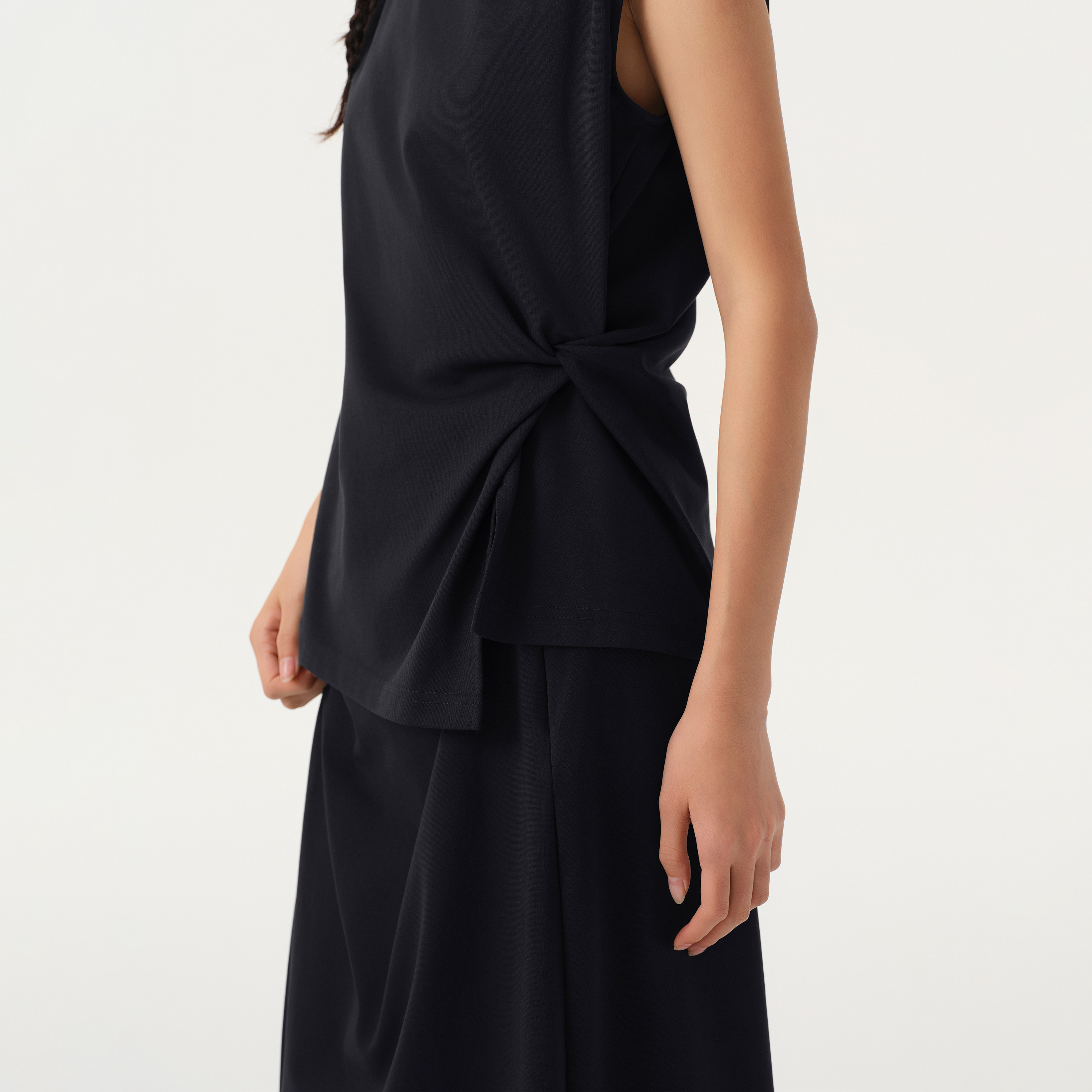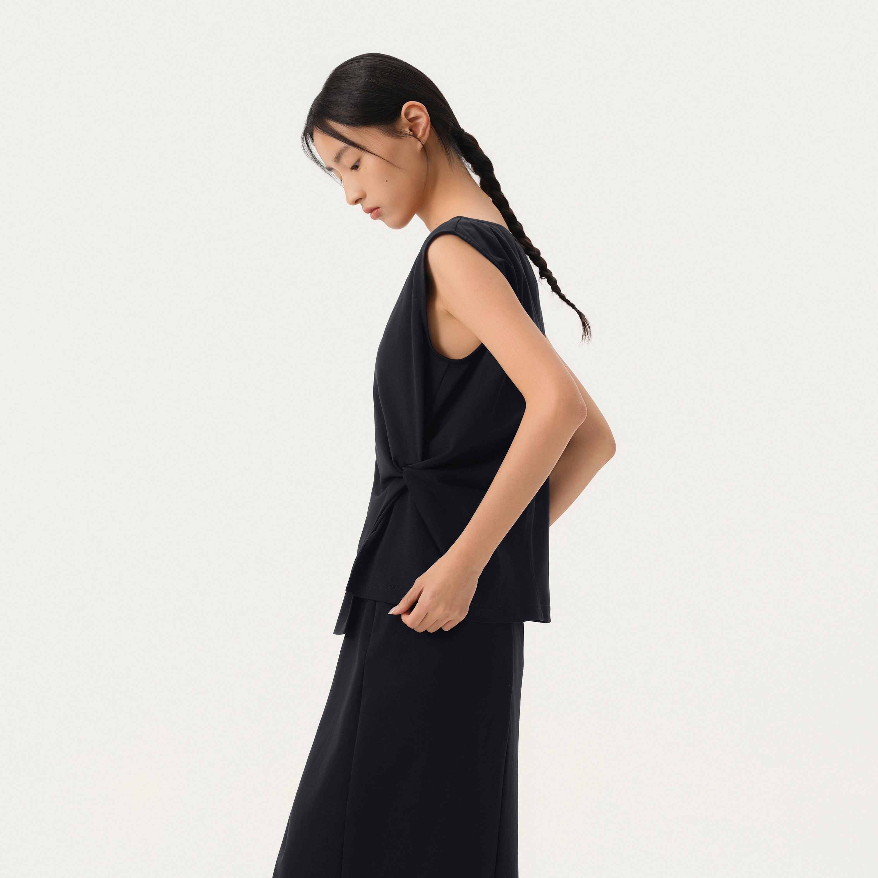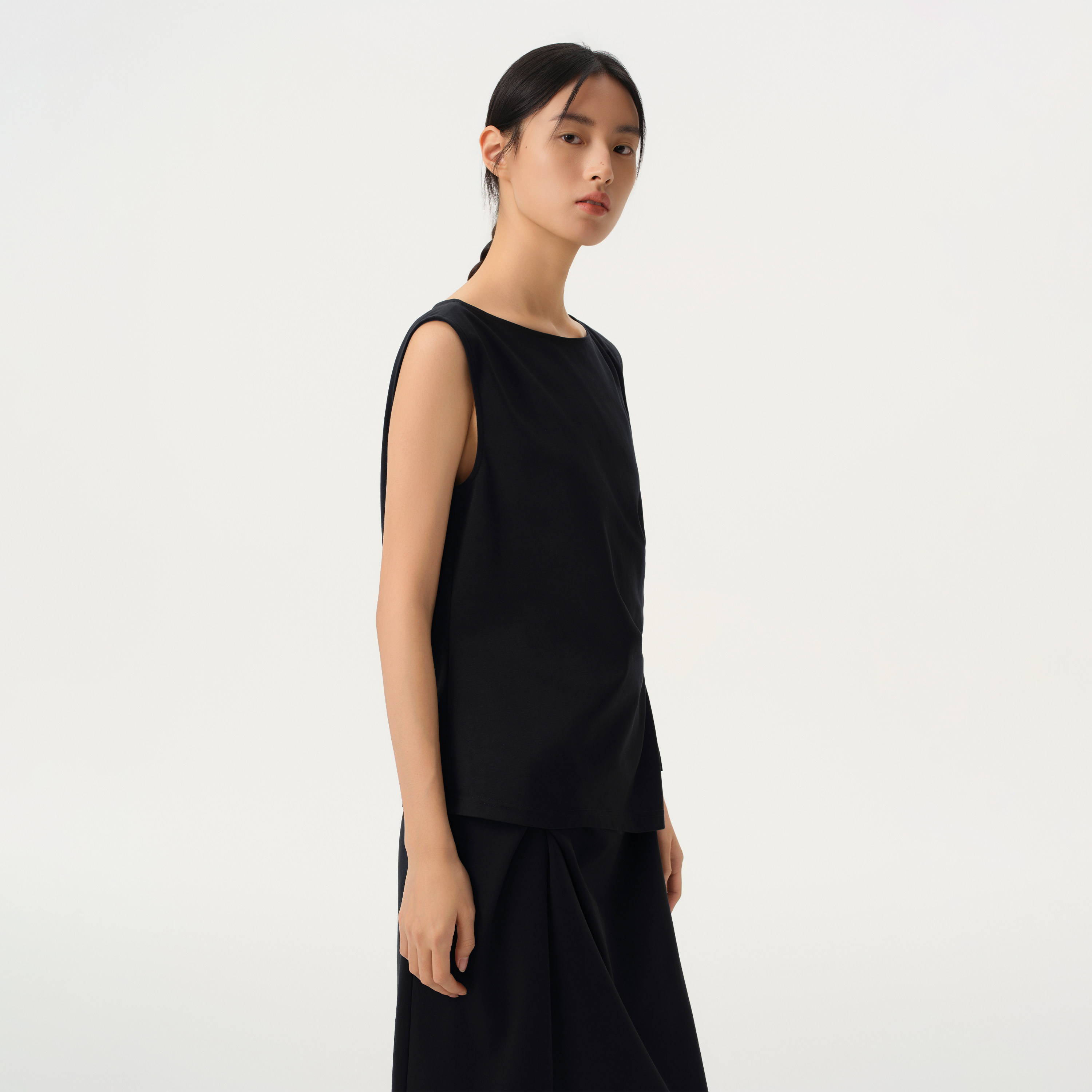 播商场同款 圆领T恤女26春季 新款 不规则上衣BDT1YD1217 黑色无袖
