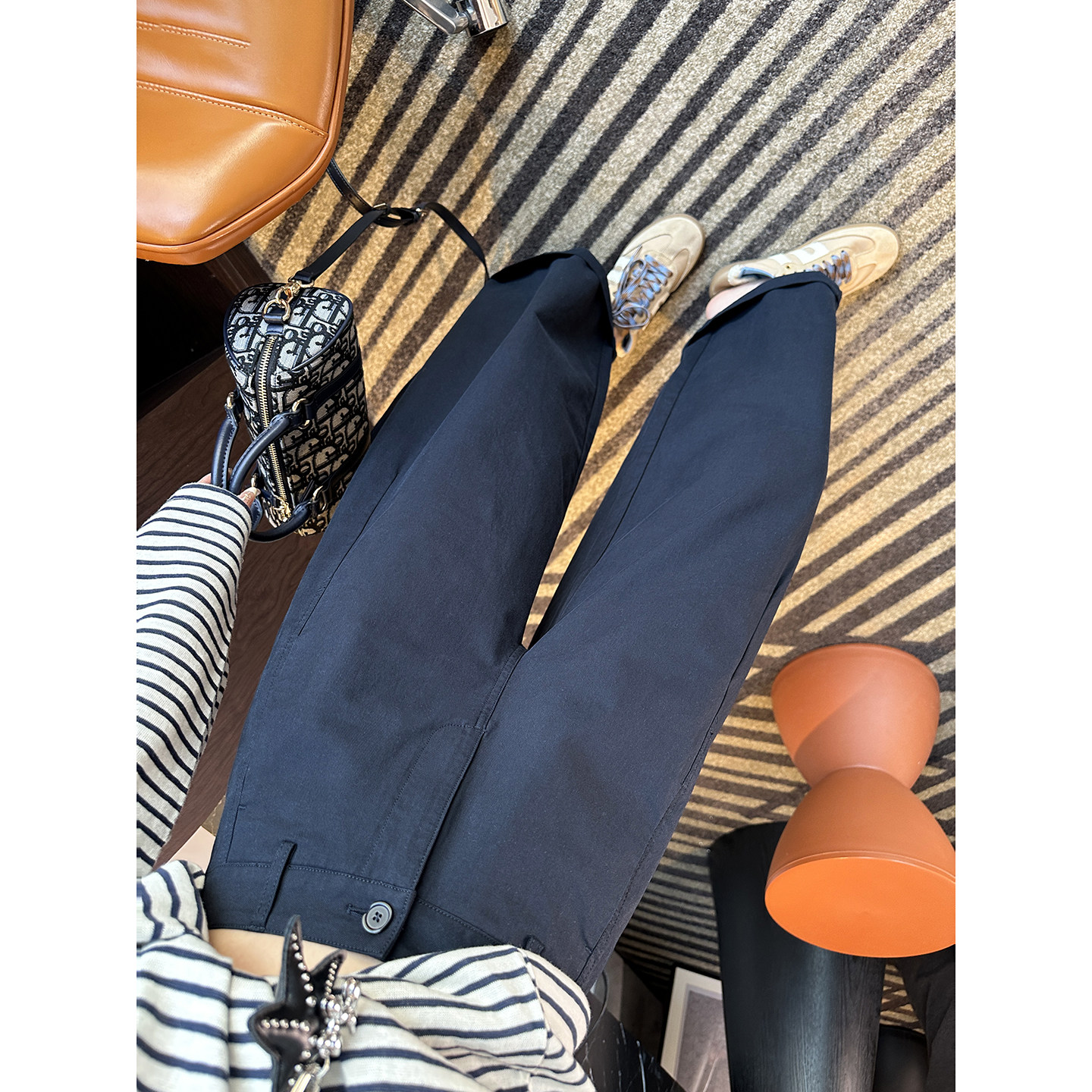 橘子树在哪儿腰头撞色休闲弹力喇叭裤 修身 显瘦垂感拖地卫裤 女春季