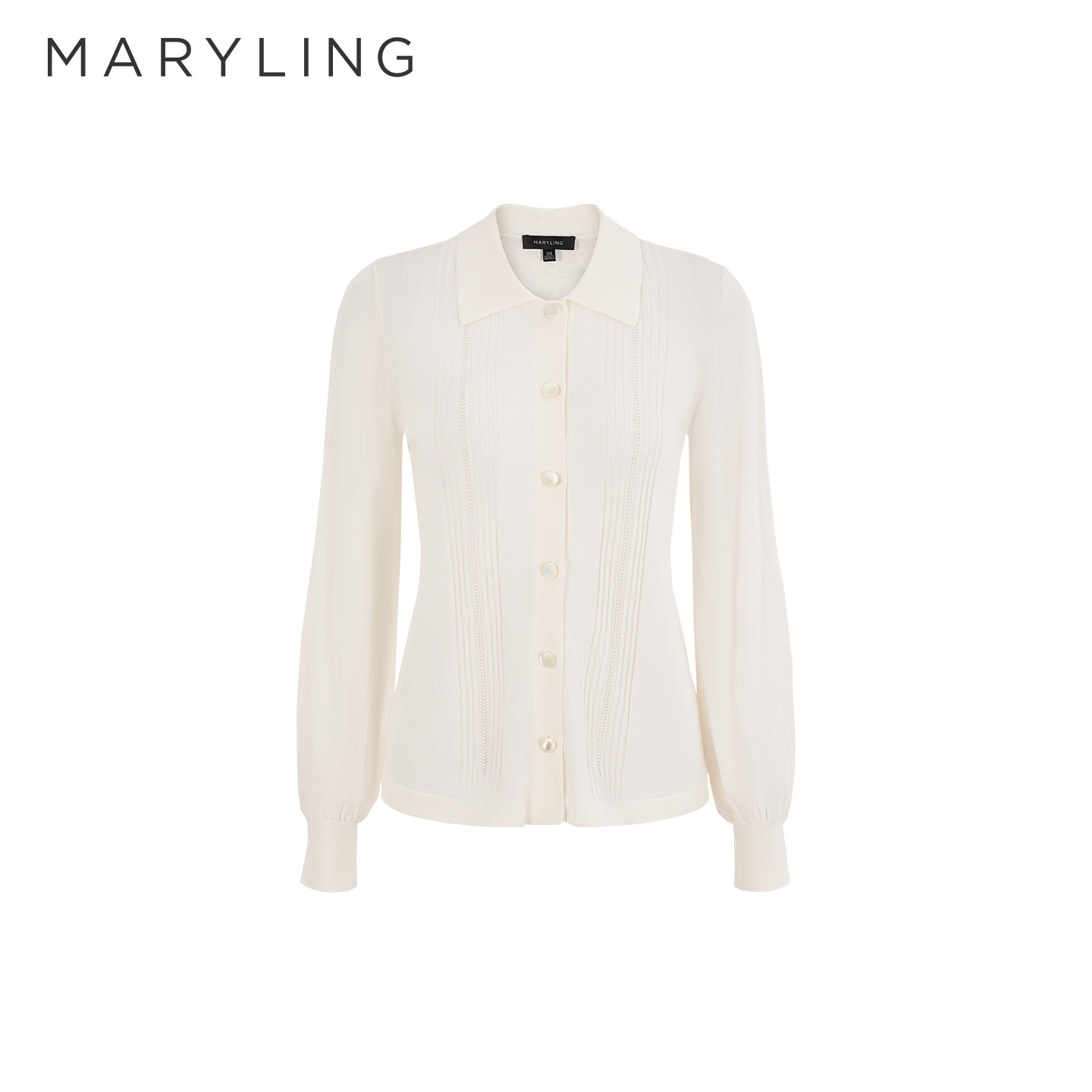 为您提供商品白色通透感翻领针织开衫 A1GBW08190 新品 MARYLING玛俪琳2026春季的详细介绍,