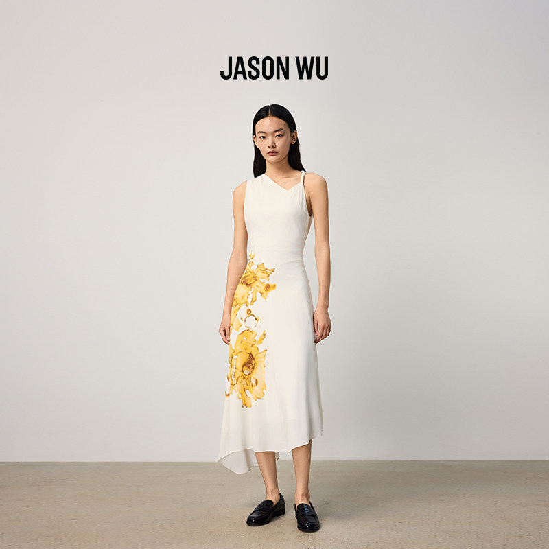 JASON 无袖 连衣裙花卉印花设计感收腰中长款 裙子 WU商场同款由