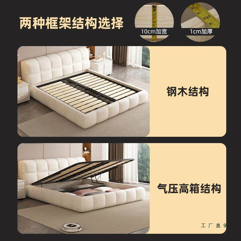 极简主卧MBF芙奶油风布现艺床人大床简约代网红泡麂双皮绒婚 意式