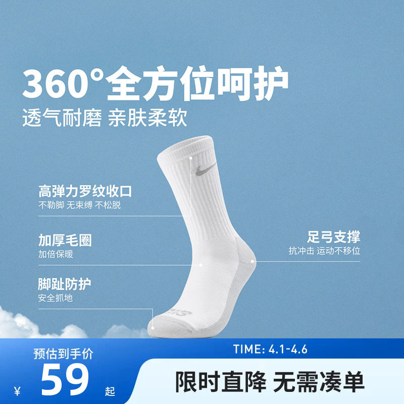 为您提供商品Nike 3brand男女童袜子儿童运动袜2026新款 厚底耐磨长袜 3双装的详细介绍,