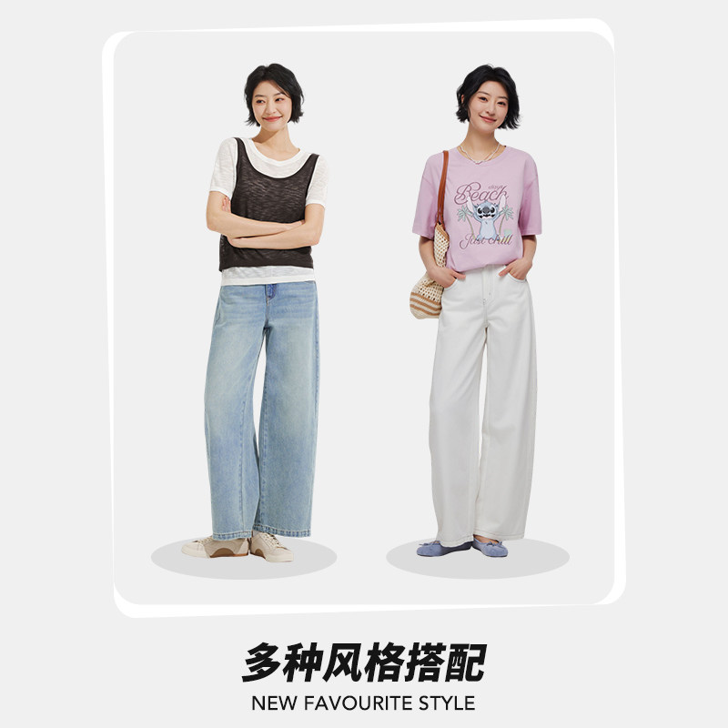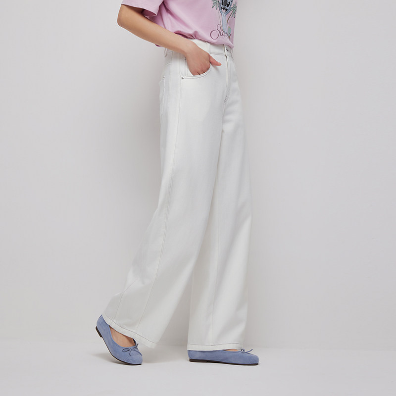 垂感弯刀牛仔裤 热风女士弯刀裤 2026夏季 新款 宽松阔腿白色牛仔长裤