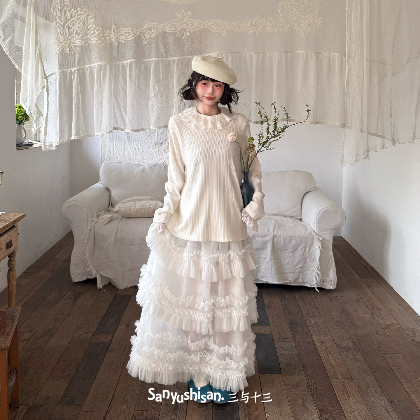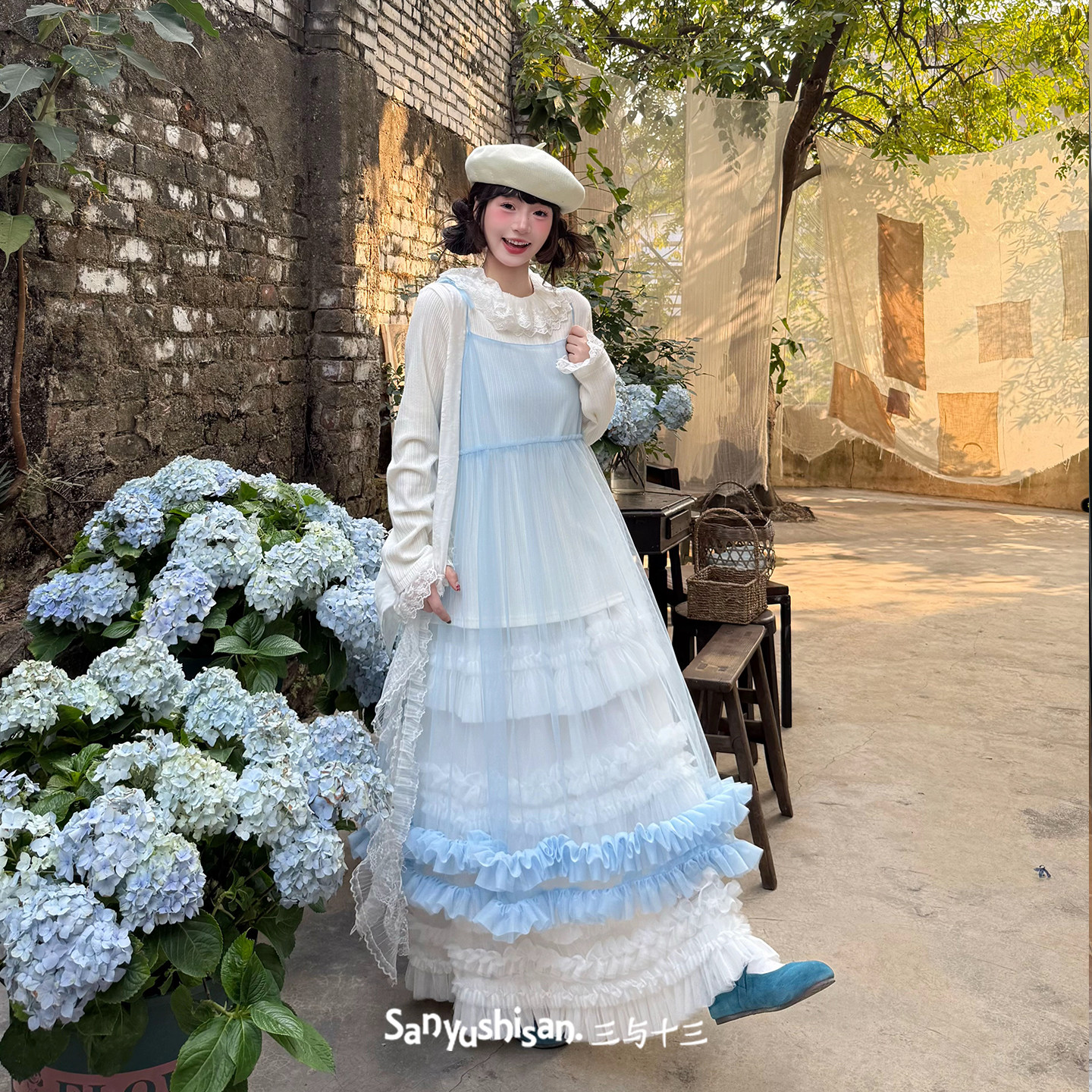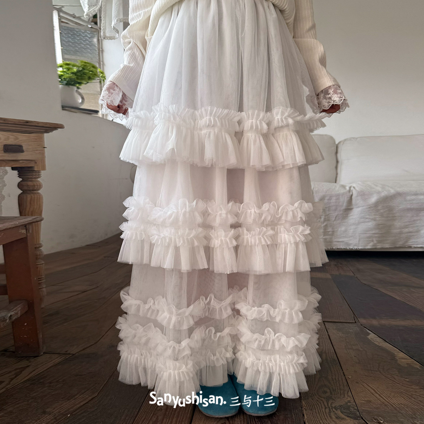 春季 甜美风蛋糕裙女木耳边慵懒风网纱半身裙女 微风呢喃 三与十三