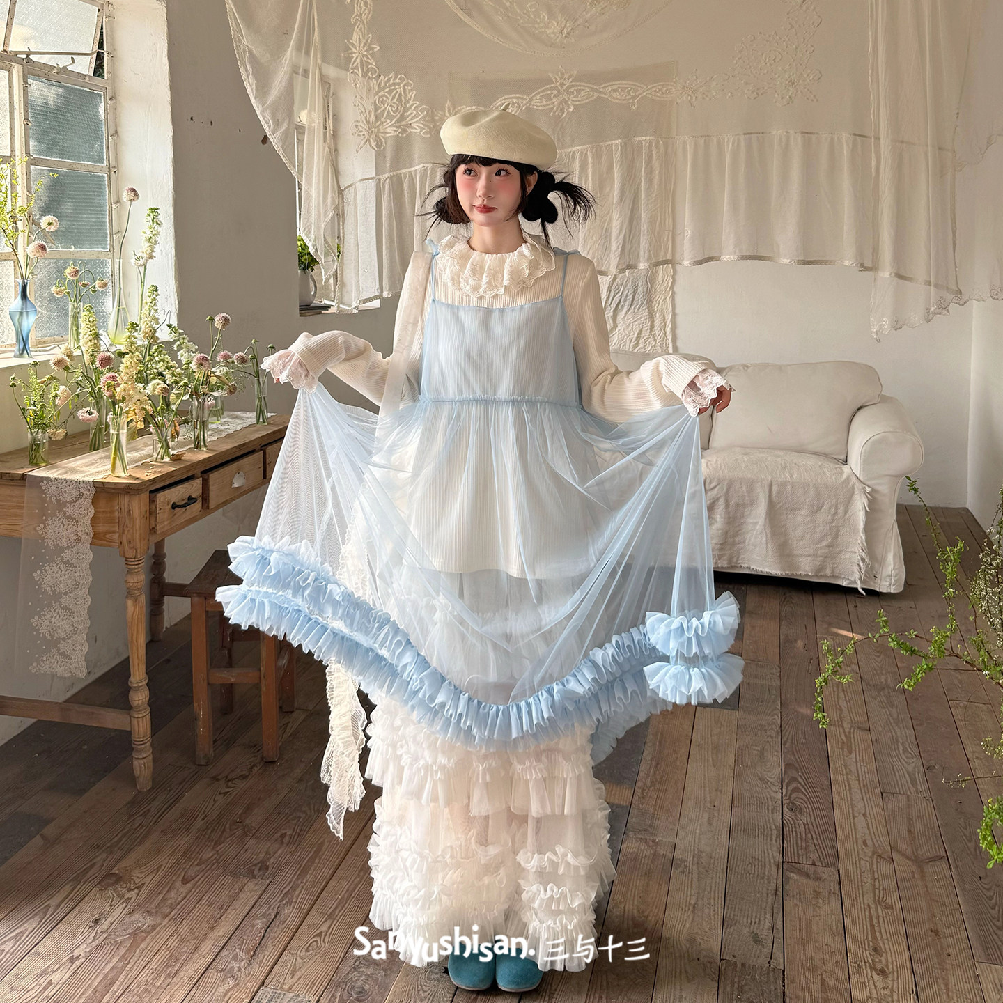 春季 甜美风蛋糕裙女木耳边慵懒风网纱半身裙女 微风呢喃 三与十三由