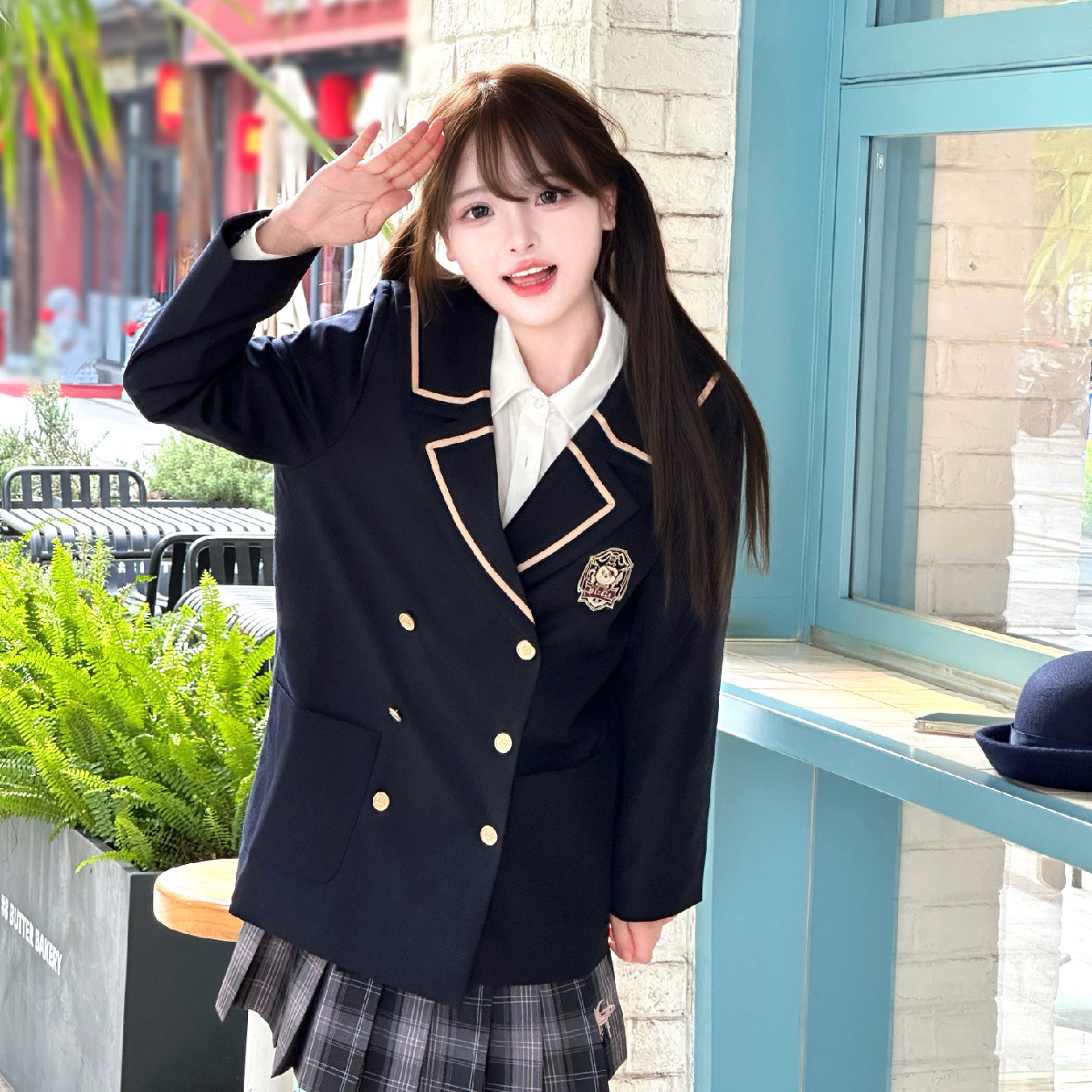 COSME 原创外套绀色百搭制服学院中长款 西装 女jk制服 海盗熊